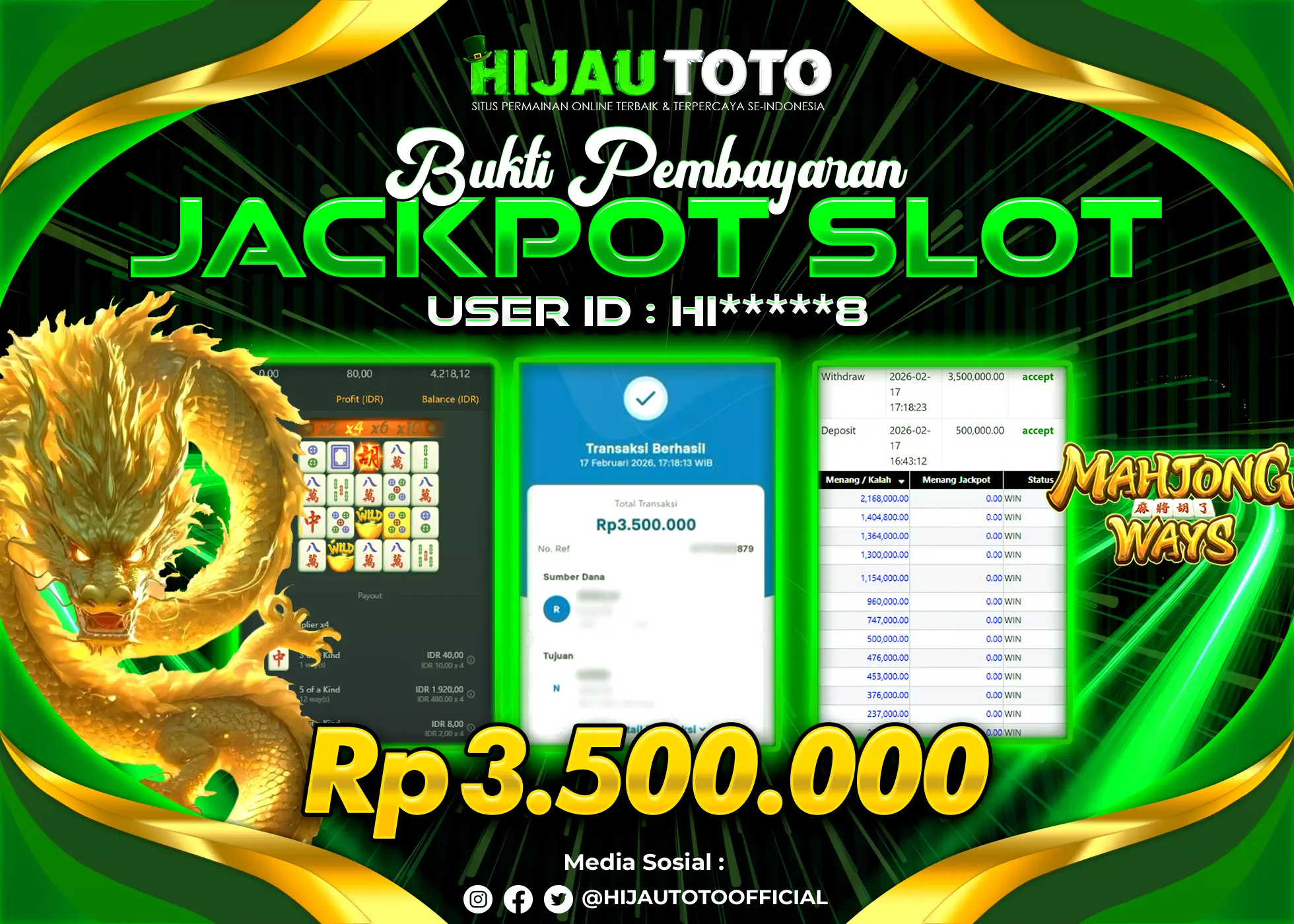 Selamat datang di HIJAUTOTO, tempatnya seru-seruan dan cuan besar! Mulai main cukup dengan modal Rp5.000 aja, taruhan super murah dari Rp100 perak! Mau main slot yang penuh warna? Atau togel dari 20 pasaran paling hits? Atau mungkin tembak ikan yang bikin deg-degan? Tenang, ada juga taruhan bola, sabung ayam, dan live casino yang bikin suasana makin hidup! Daftar sekarang dan dapetin bonus new member 100% langsung, biar modalmu makin tebal. Deposit gampang banget, bisa pakai QRIS, dan kalau butuh bantuan, customer service kita siap 24 jam nonstop. Jadi, tunggu apa lagi? Yuk, gabung dan bawa pulang kemenangannya cuma di HIJAUTOTO!