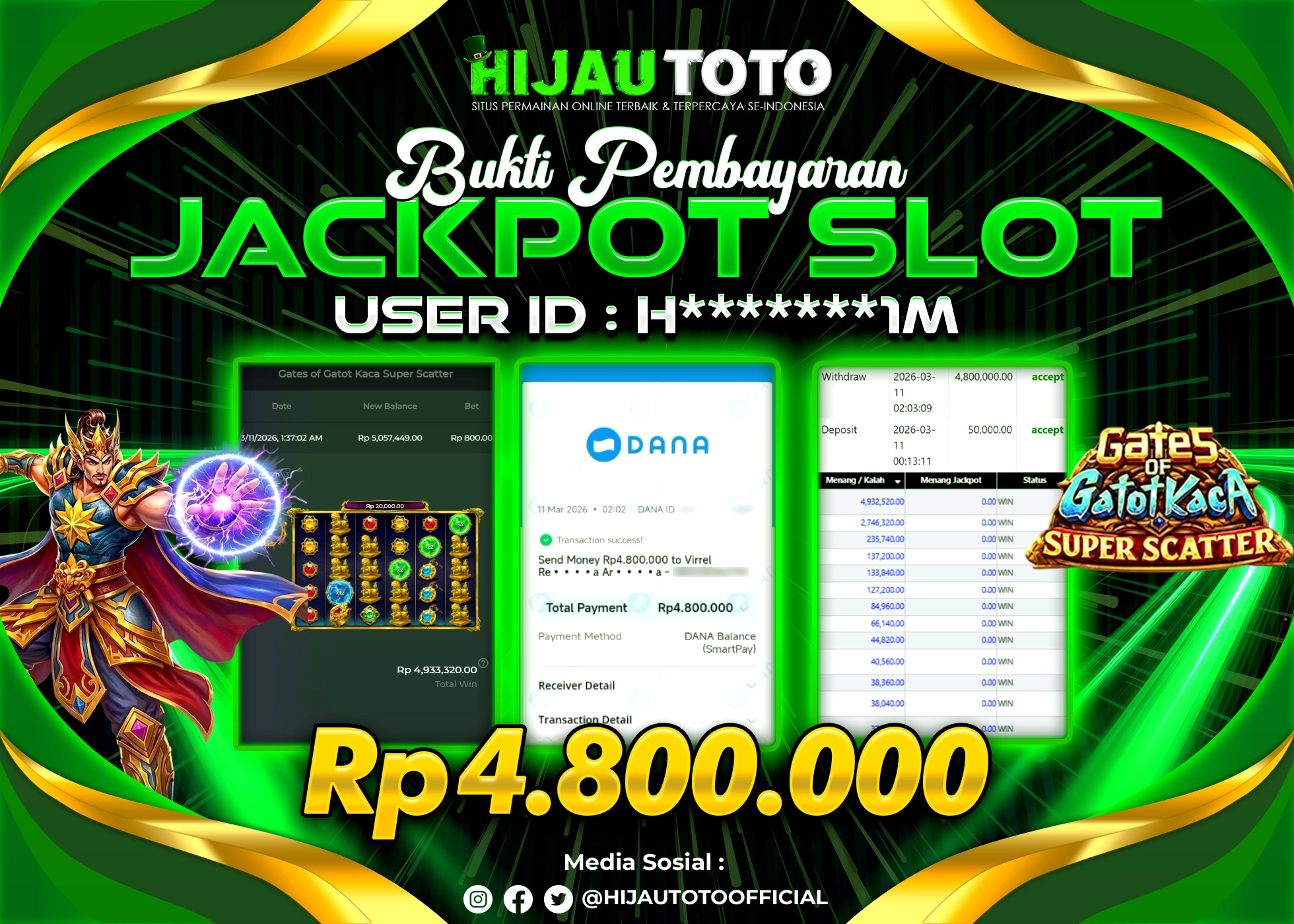 Selamat Kepada Member HIJAUTOTO H*******1M Telah Jackpot Di SLOT GATES OF GATOTKACA SUPER SCATTER