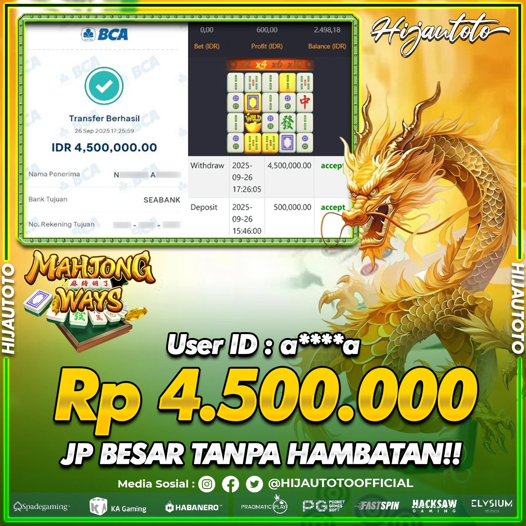 Selamat datang di HIJAUTOTO, tempatnya seru-seruan dan cuan besar! Mulai main cukup dengan modal Rp5.000 aja, taruhan super murah dari Rp100 perak! Mau main slot yang penuh warna? Atau togel dari 20 pasaran paling hits? Atau mungkin tembak ikan yang bikin deg-degan? Tenang, ada juga taruhan bola, sabung ayam, dan live casino yang bikin suasana makin hidup! Daftar sekarang dan dapetin bonus new member 100% langsung, biar modalmu makin tebal. Deposit gampang banget, bisa pakai QRIS, dan kalau butuh bantuan, customer service kita siap 24 jam nonstop. Jadi, tunggu apa lagi? Yuk, gabung dan bawa pulang kemenangannya cuma di HIJAUTOTO!