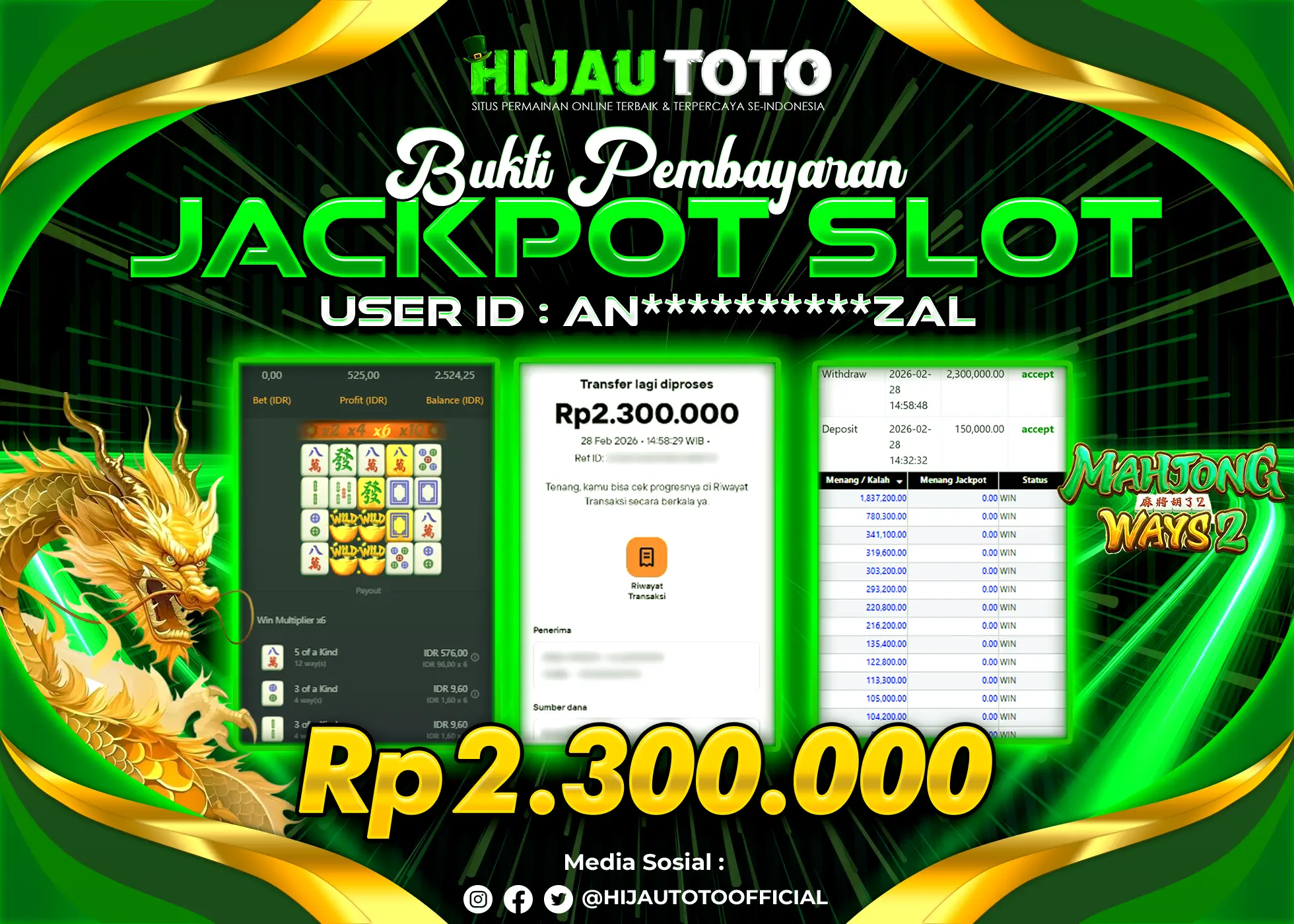 Selamat datang di HIJAUTOTO, tempatnya seru-seruan dan cuan besar! Mulai main cukup dengan modal Rp5.000 aja, taruhan super murah dari Rp100 perak! Mau main slot yang penuh warna? Atau togel dari 20 pasaran paling hits? Atau mungkin tembak ikan yang bikin deg-degan? Tenang, ada juga taruhan bola, sabung ayam, dan live casino yang bikin suasana makin hidup! Daftar sekarang dan dapetin bonus new member 100% langsung, biar modalmu makin tebal. Deposit gampang banget, bisa pakai QRIS, dan kalau butuh bantuan, customer service kita siap 24 jam nonstop. Jadi, tunggu apa lagi? Yuk, gabung dan bawa pulang kemenangannya cuma di HIJAUTOTO!