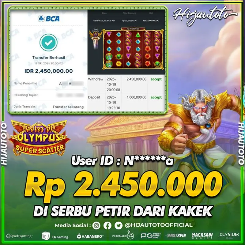 Karena berhasil memenangkan Rp.Rp.2.000.000 dari permainan seru SLOT GATES OF OLYMPUS SUPER SCATTER di HIJAUTOTO! πŸ’°πŸ’Έ