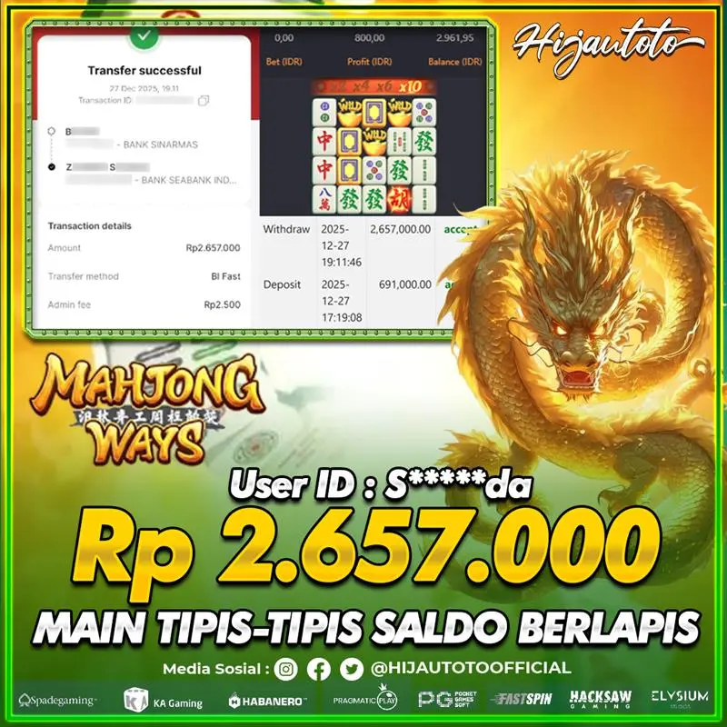 Karena berhasil memenangkan Rp.Rp.21.000.000 dari permainan seru SLOT MAHJONG WAYS di HIJAUTOTO! πŸ’°πŸ’Έ