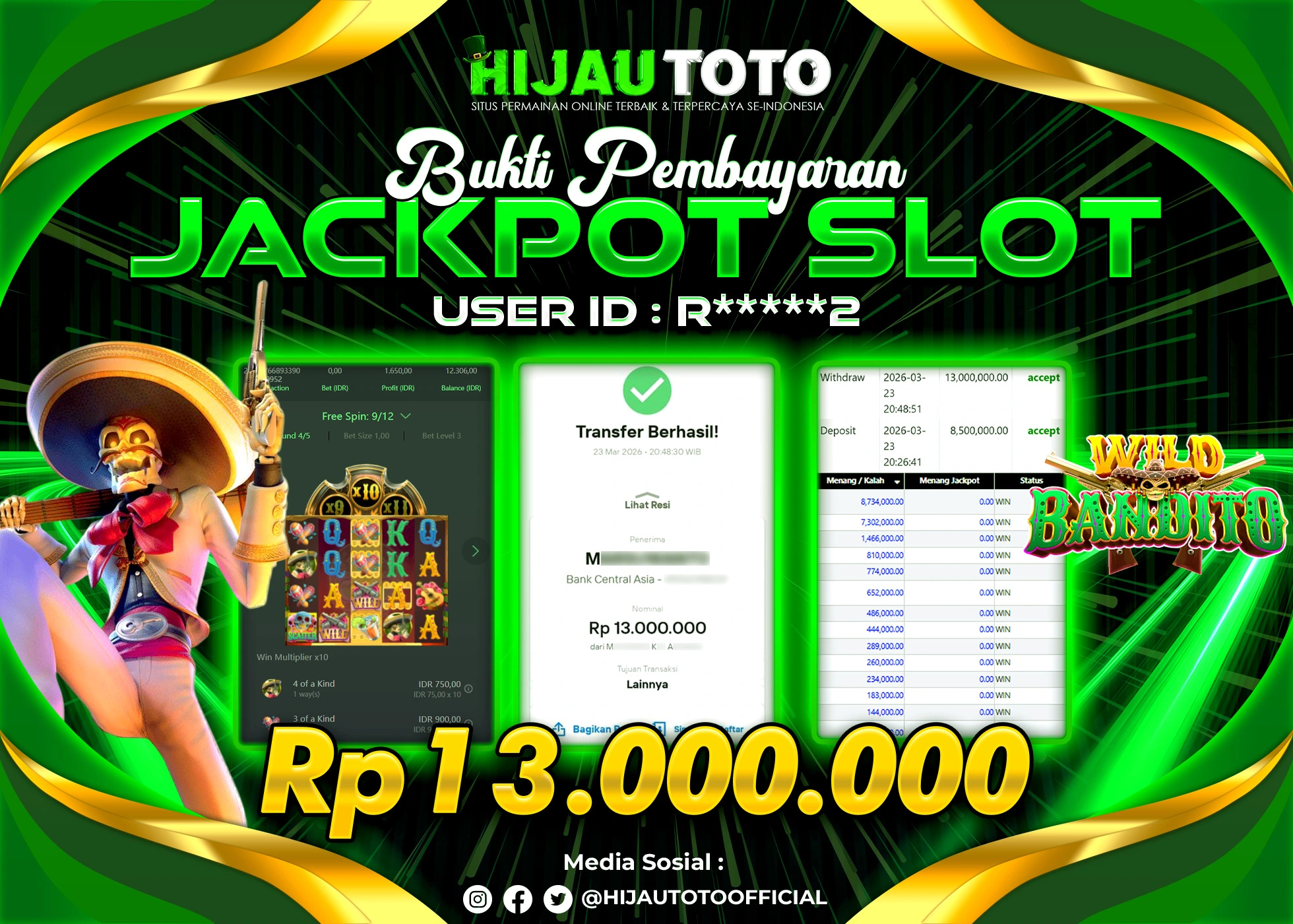 β¨ JACKPOT DI SLOT WILD BANDITO β¨