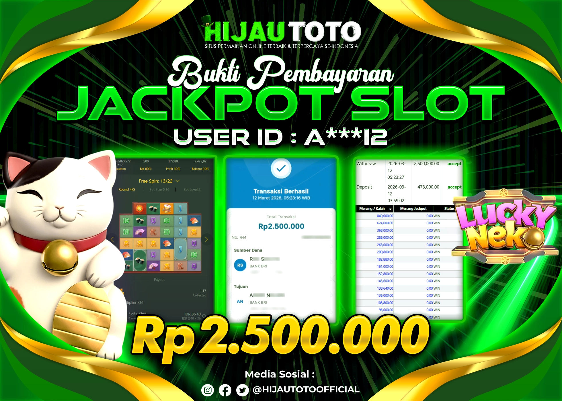 β¨ JACKPOT DI SLOT LUCKY NEKO β¨