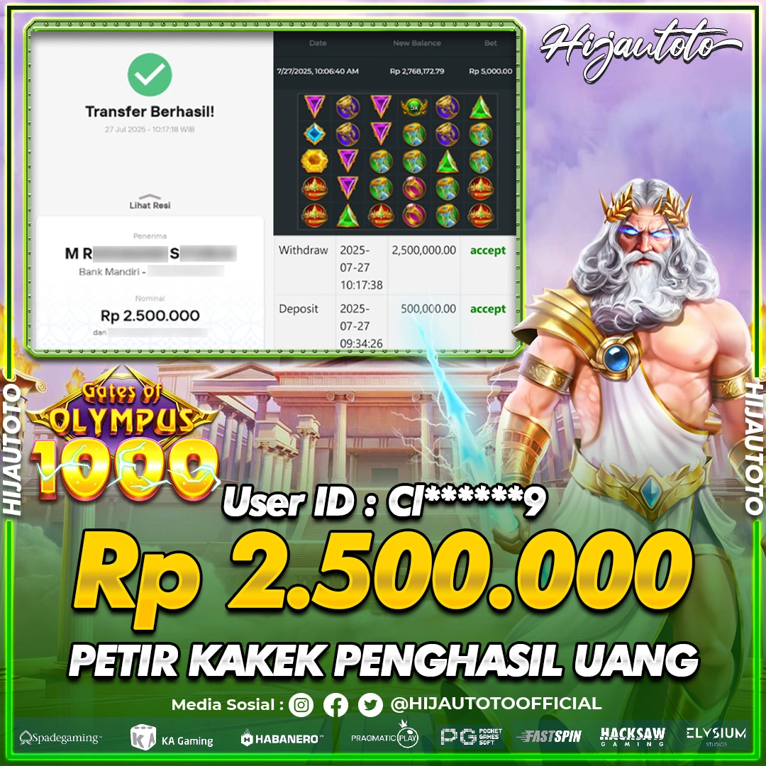 Selamat datang di HIJAUTOTO, tempatnya seru-seruan dan cuan besar! Mulai main cukup dengan modal Rp5.000 aja, taruhan super murah dari Rp100 perak! Mau main slot yang penuh warna? Atau togel dari 20 pasaran paling hits? Atau mungkin tembak ikan yang bikin deg-degan? Tenang, ada juga taruhan bola, sabung ayam, dan live casino yang bikin suasana makin hidup! Daftar sekarang dan dapetin bonus new member 100% langsung, biar modalmu makin tebal. Deposit gampang banget, bisa pakai QRIS, dan kalau butuh bantuan, customer service kita siap 24 jam nonstop. Jadi, tunggu apa lagi? Yuk, gabung dan bawa pulang kemenangannya cuma di HIJAUTOTO!