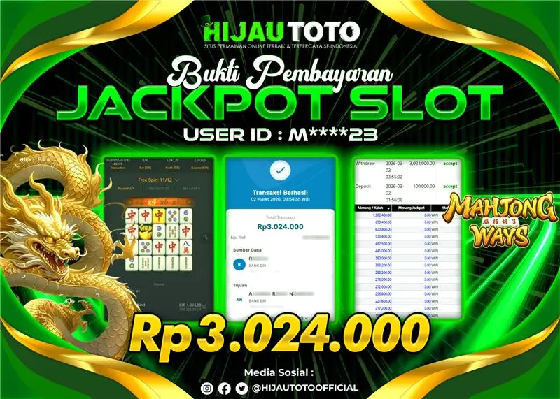 Selamat datang di HIJAUTOTO, tempatnya seru-seruan dan cuan besar! Mulai main cukup dengan modal Rp5.000 aja, taruhan super murah dari Rp100 perak! Mau main slot yang penuh warna? Atau togel dari 20 pasaran paling hits? Atau mungkin tembak ikan yang bikin deg-degan? Tenang, ada juga taruhan bola, sabung ayam, dan live casino yang bikin suasana makin hidup! Daftar sekarang dan dapetin bonus new member 100% langsung, biar modalmu makin tebal. Deposit gampang banget, bisa pakai QRIS, dan kalau butuh bantuan, customer service kita siap 24 jam nonstop. Jadi, tunggu apa lagi? Yuk, gabung dan bawa pulang kemenangannya cuma di HIJAUTOTO!