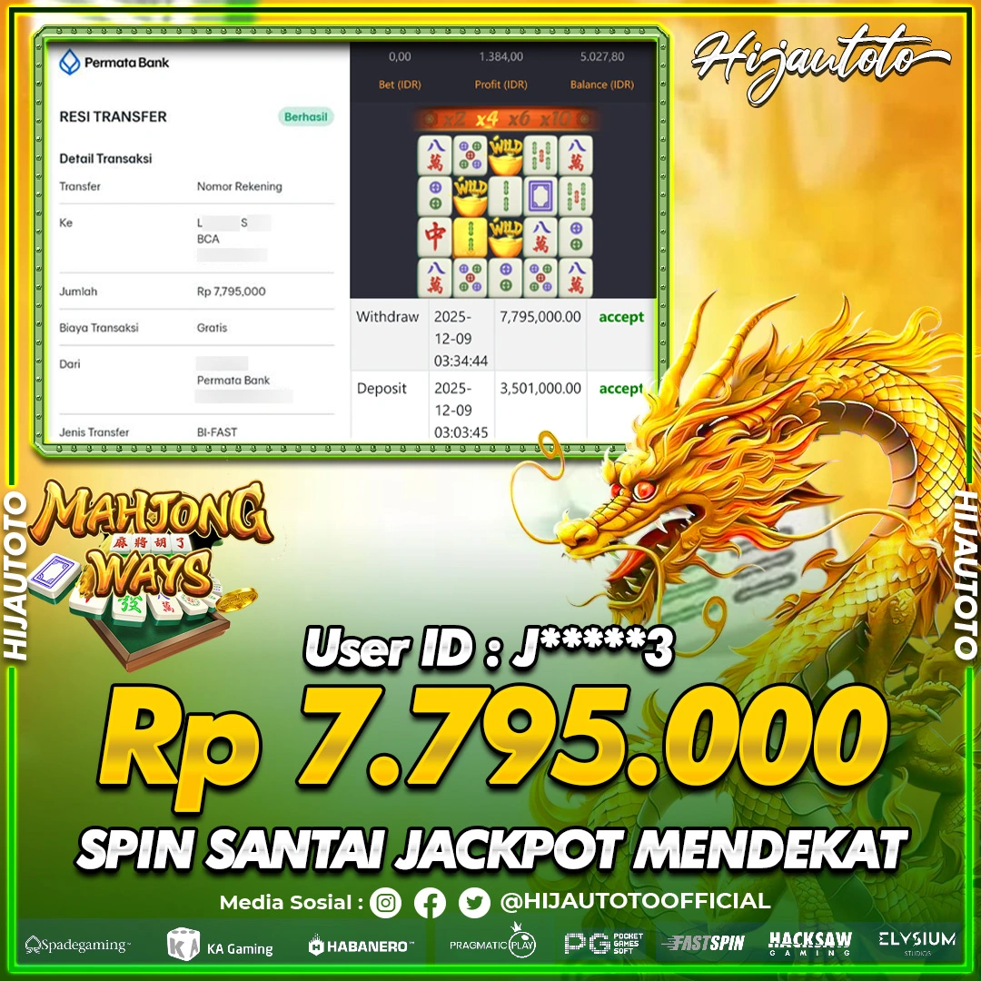 Selamat Kepada Member HIJAUTOTO JE***G Telah Jackpot Di SLOT MAHJONG WAYS