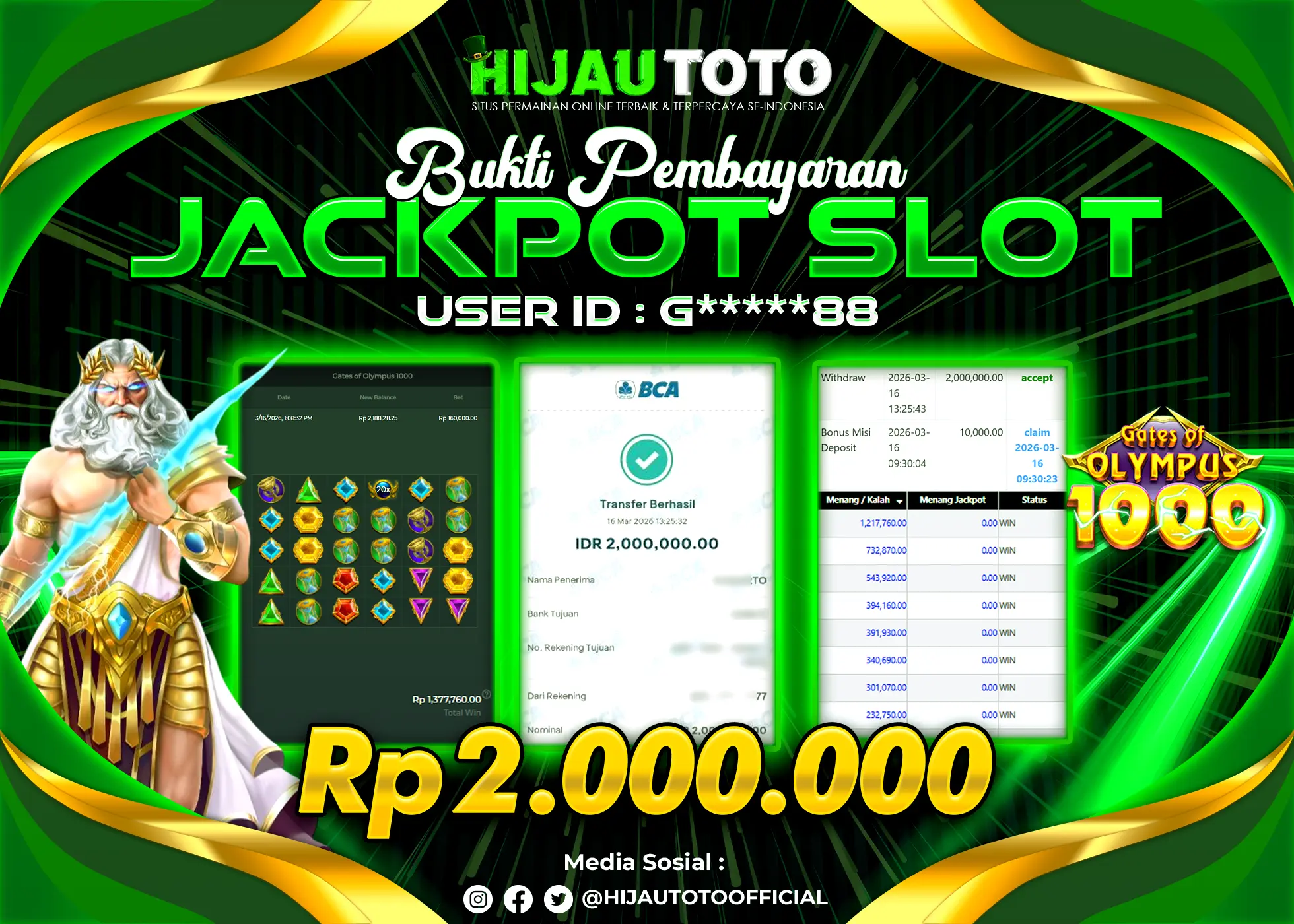 Selamat datang di HIJAUTOTO, tempatnya seru-seruan dan cuan besar! Mulai main cukup dengan modal Rp5.000 aja, taruhan super murah dari Rp100 perak! Mau main slot yang penuh warna? Atau togel dari 20 pasaran paling hits? Atau mungkin tembak ikan yang bikin deg-degan? Tenang, ada juga taruhan bola, sabung ayam, dan live casino yang bikin suasana makin hidup! Daftar sekarang dan dapetin bonus new member 100% langsung, biar modalmu makin tebal. Deposit gampang banget, bisa pakai QRIS, dan kalau butuh bantuan, customer service kita siap 24 jam nonstop. Jadi, tunggu apa lagi? Yuk, gabung dan bawa pulang kemenangannya cuma di HIJAUTOTO!