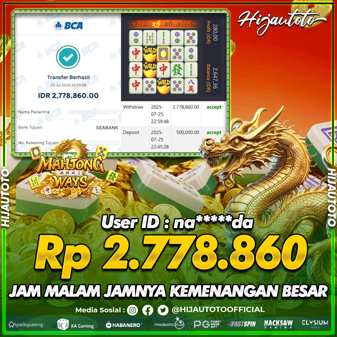 Selamat datang di HIJAUTOTO, tempatnya seru-seruan dan cuan besar! Mulai main cukup dengan modal Rp5.000 aja, taruhan super murah dari Rp100 perak! Mau main slot yang penuh warna? Atau togel dari 20 pasaran paling hits? Atau mungkin tembak ikan yang bikin deg-degan? Tenang, ada juga taruhan bola, sabung ayam, dan live casino yang bikin suasana makin hidup! Daftar sekarang dan dapetin bonus new member 100% langsung, biar modalmu makin tebal. Deposit gampang banget, bisa pakai QRIS, dan kalau butuh bantuan, customer service kita siap 24 jam nonstop. Jadi, tunggu apa lagi? Yuk, gabung dan bawa pulang kemenangannya cuma di HIJAUTOTO!
