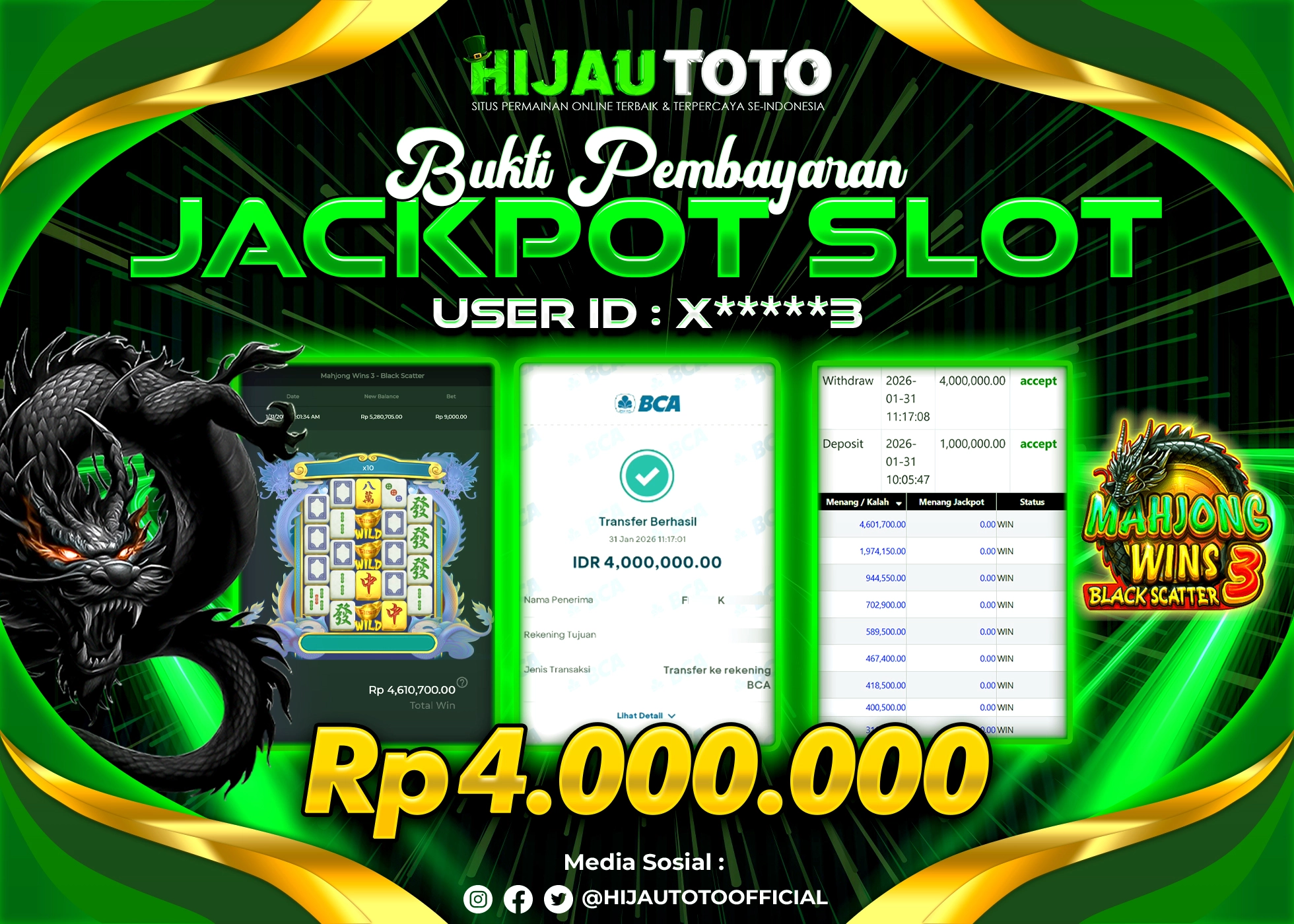 Selamat datang di HIJAUTOTO, tempatnya seru-seruan dan cuan besar! Mulai main cukup dengan modal Rp5.000 aja, taruhan super murah dari Rp100 perak! Mau main slot yang penuh warna? Atau togel dari 20 pasaran paling hits? Atau mungkin tembak ikan yang bikin deg-degan? Tenang, ada juga taruhan bola, sabung ayam, dan live casino yang bikin suasana makin hidup! Daftar sekarang dan dapetin bonus new member 100% langsung, biar modalmu makin tebal. Deposit gampang banget, bisa pakai QRIS, dan kalau butuh bantuan, customer service kita siap 24 jam nonstop. Jadi, tunggu apa lagi? Yuk, gabung dan bawa pulang kemenangannya cuma di HIJAUTOTO!