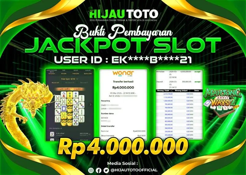 Selamat datang di HIJAUTOTO, tempatnya seru-seruan dan cuan besar! Mulai main cukup dengan modal Rp5.000 aja, taruhan super murah dari Rp100 perak! Mau main slot yang penuh warna? Atau togel dari 20 pasaran paling hits? Atau mungkin tembak ikan yang bikin deg-degan? Tenang, ada juga taruhan bola, sabung ayam, dan live casino yang bikin suasana makin hidup! Daftar sekarang dan dapetin bonus new member 100% langsung, biar modalmu makin tebal. Deposit gampang banget, bisa pakai QRIS, dan kalau butuh bantuan, customer service kita siap 24 jam nonstop. Jadi, tunggu apa lagi? Yuk, gabung dan bawa pulang kemenangannya cuma di HIJAUTOTO!
