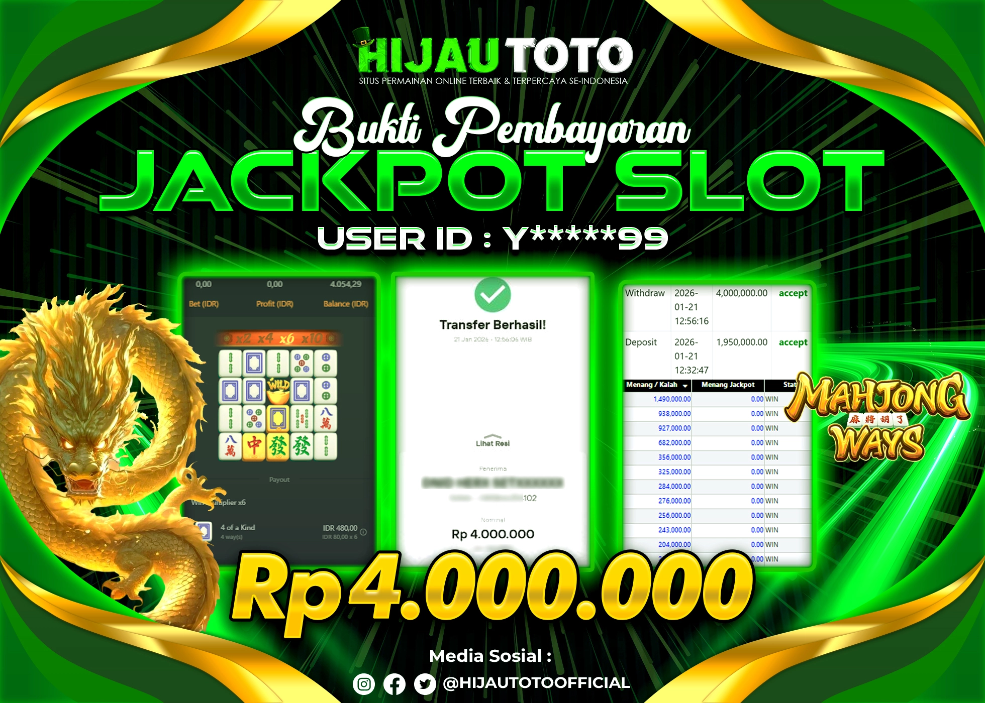 Selamat datang di HIJAUTOTO, tempatnya seru-seruan dan cuan besar! Mulai main cukup dengan modal Rp5.000 aja, taruhan super murah dari Rp100 perak! Mau main slot yang penuh warna? Atau togel dari 20 pasaran paling hits? Atau mungkin tembak ikan yang bikin deg-degan? Tenang, ada juga taruhan bola, sabung ayam, dan live casino yang bikin suasana makin hidup! Daftar sekarang dan dapetin bonus new member 100% langsung, biar modalmu makin tebal. Deposit gampang banget, bisa pakai QRIS, dan kalau butuh bantuan, customer service kita siap 24 jam nonstop. Jadi, tunggu apa lagi? Yuk, gabung dan bawa pulang kemenangannya cuma di HIJAUTOTO!