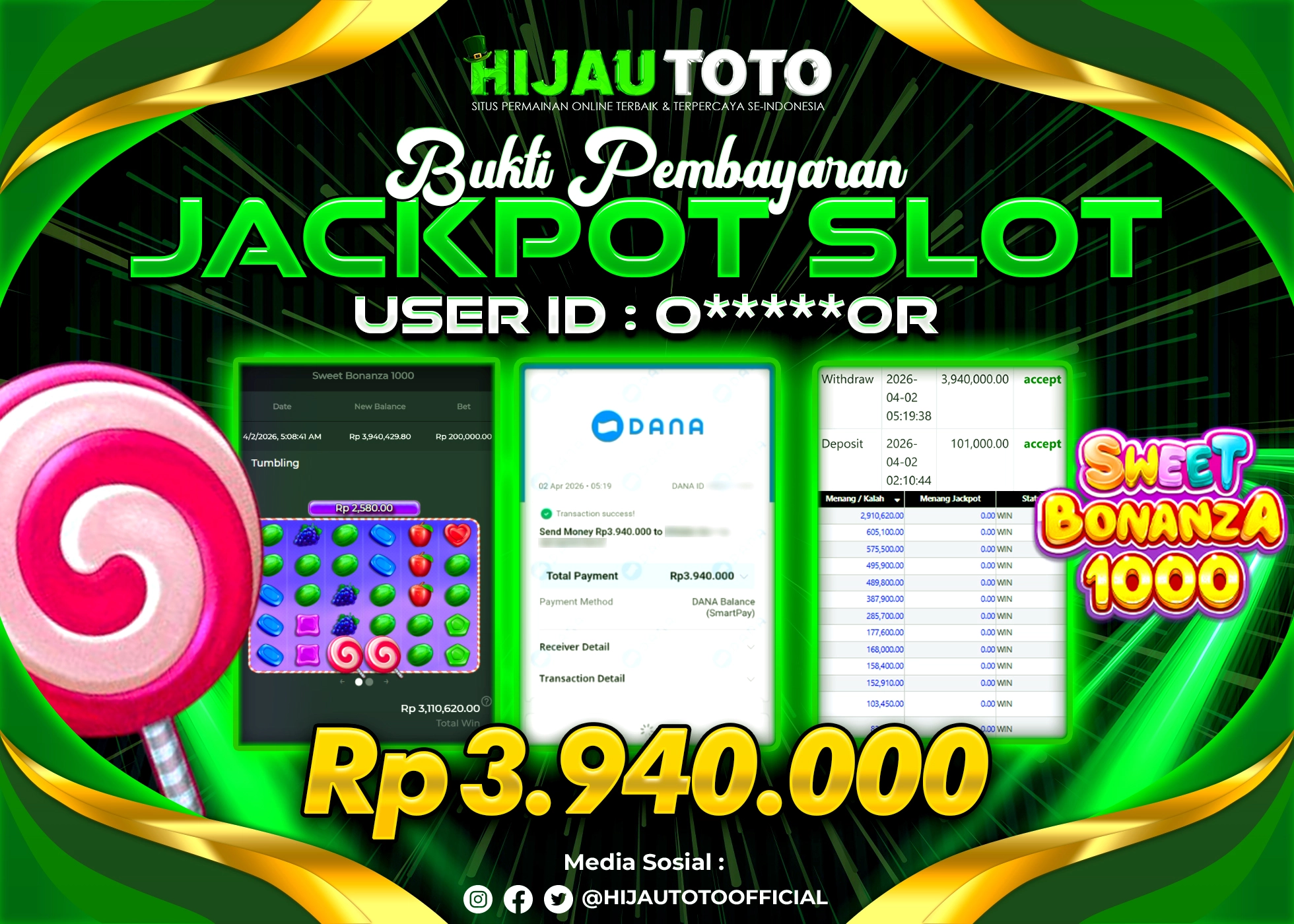 Selamat datang di HIJAUTOTO, tempatnya seru-seruan dan cuan besar! Mulai main cukup dengan modal Rp5.000 aja, taruhan super murah dari Rp100 perak! Mau main slot yang penuh warna? Atau togel dari 20 pasaran paling hits? Atau mungkin tembak ikan yang bikin deg-degan? Tenang, ada juga taruhan bola, sabung ayam, dan live casino yang bikin suasana makin hidup! Daftar sekarang dan dapetin bonus new member 100% langsung, biar modalmu makin tebal. Deposit gampang banget, bisa pakai QRIS, dan kalau butuh bantuan, customer service kita siap 24 jam nonstop. Jadi, tunggu apa lagi? Yuk, gabung dan bawa pulang kemenangannya cuma di HIJAUTOTO!