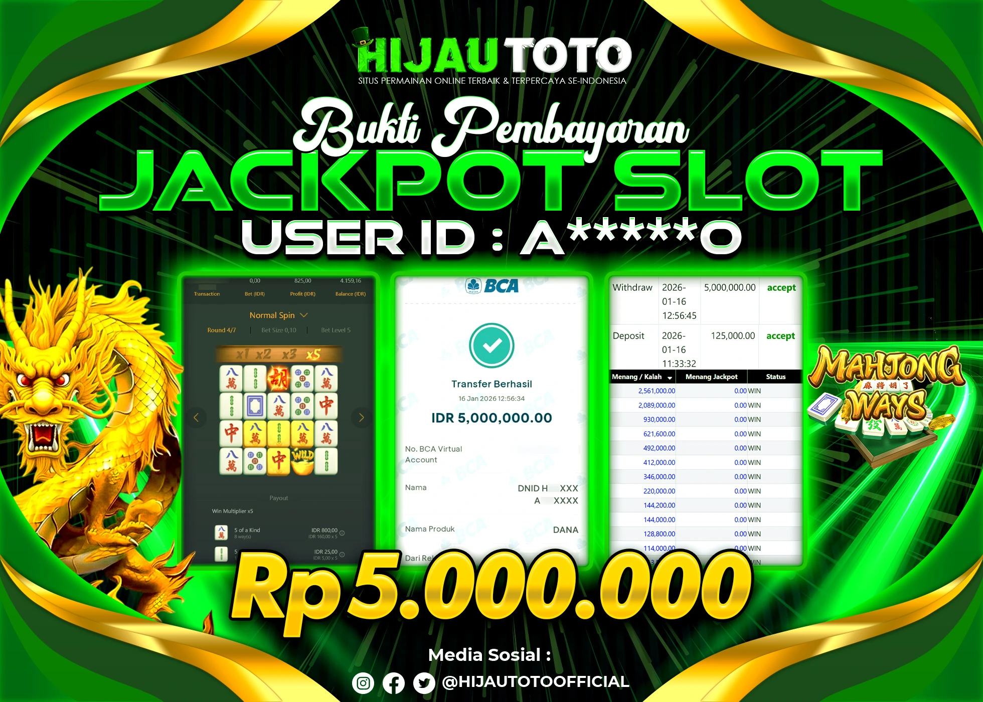 Selamat datang di HIJAUTOTO, tempatnya seru-seruan dan cuan besar! Mulai main cukup dengan modal Rp5.000 aja, taruhan super murah dari Rp100 perak! Mau main slot yang penuh warna? Atau togel dari 20 pasaran paling hits? Atau mungkin tembak ikan yang bikin deg-degan? Tenang, ada juga taruhan bola, sabung ayam, dan live casino yang bikin suasana makin hidup! Daftar sekarang dan dapetin bonus new member 100% langsung, biar modalmu makin tebal. Deposit gampang banget, bisa pakai QRIS, dan kalau butuh bantuan, customer service kita siap 24 jam nonstop. Jadi, tunggu apa lagi? Yuk, gabung dan bawa pulang kemenangannya cuma di HIJAUTOTO!