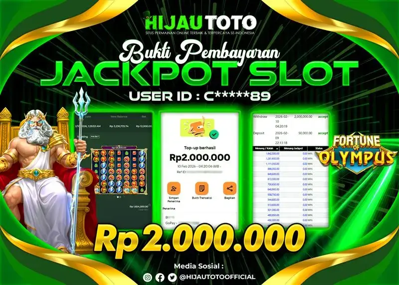 Selamat datang di HIJAUTOTO, tempatnya seru-seruan dan cuan besar! Mulai main cukup dengan modal Rp5.000 aja, taruhan super murah dari Rp100 perak! Mau main slot yang penuh warna? Atau togel dari 20 pasaran paling hits? Atau mungkin tembak ikan yang bikin deg-degan? Tenang, ada juga taruhan bola, sabung ayam, dan live casino yang bikin suasana makin hidup! Daftar sekarang dan dapetin bonus new member 100% langsung, biar modalmu makin tebal. Deposit gampang banget, bisa pakai QRIS, dan kalau butuh bantuan, customer service kita siap 24 jam nonstop. Jadi, tunggu apa lagi? Yuk, gabung dan bawa pulang kemenangannya cuma di HIJAUTOTO!