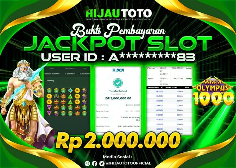 Selamat datang di HIJAUTOTO, tempatnya seru-seruan dan cuan besar! Mulai main cukup dengan modal Rp5.000 aja, taruhan super murah dari Rp100 perak! Mau main slot yang penuh warna? Atau togel dari 20 pasaran paling hits? Atau mungkin tembak ikan yang bikin deg-degan? Tenang, ada juga taruhan bola, sabung ayam, dan live casino yang bikin suasana makin hidup! Daftar sekarang dan dapetin bonus new member 100% langsung, biar modalmu makin tebal. Deposit gampang banget, bisa pakai QRIS, dan kalau butuh bantuan, customer service kita siap 24 jam nonstop. Jadi, tunggu apa lagi? Yuk, gabung dan bawa pulang kemenangannya cuma di HIJAUTOTO!