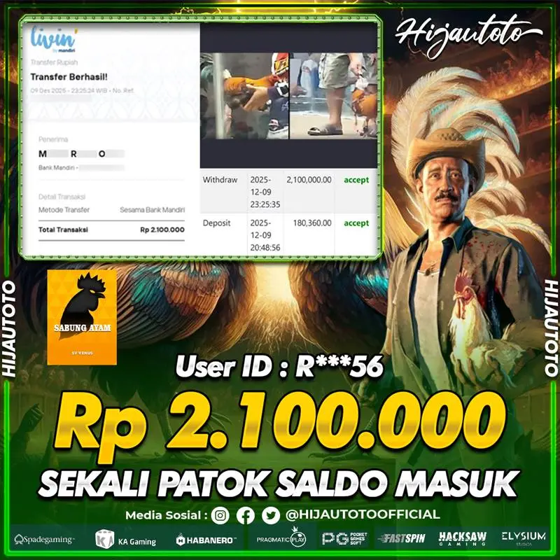 HIJAUTOTO juga menyediakan permainan sabung ayam online dengan sistem taruhan transparan dan live streaming langsung. Rasakan keseruan bertaruh dalam suasana pertandingan yang nyata dan dapatkan kesempatan menang yang adil.