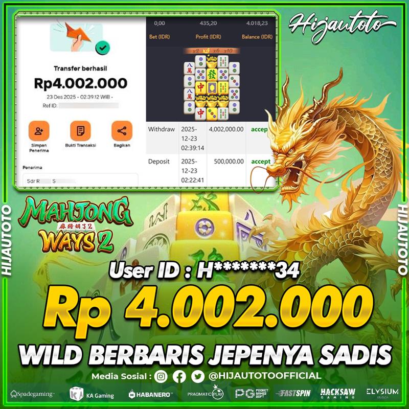 Selamat datang di HIJAUTOTO, tempatnya seru-seruan dan cuan besar! Mulai main cukup dengan modal Rp5.000 aja, taruhan super murah dari Rp100 perak! Mau main slot yang penuh warna? Atau togel dari 20 pasaran paling hits? Atau mungkin tembak ikan yang bikin deg-degan? Tenang, ada juga taruhan bola, sabung ayam, dan live casino yang bikin suasana makin hidup! Daftar sekarang dan dapetin bonus new member 100% langsung, biar modalmu makin tebal. Deposit gampang banget, bisa pakai QRIS, dan kalau butuh bantuan, customer service kita siap 24 jam nonstop. Jadi, tunggu apa lagi? Yuk, gabung dan bawa pulang kemenangannya cuma di HIJAUTOTO!