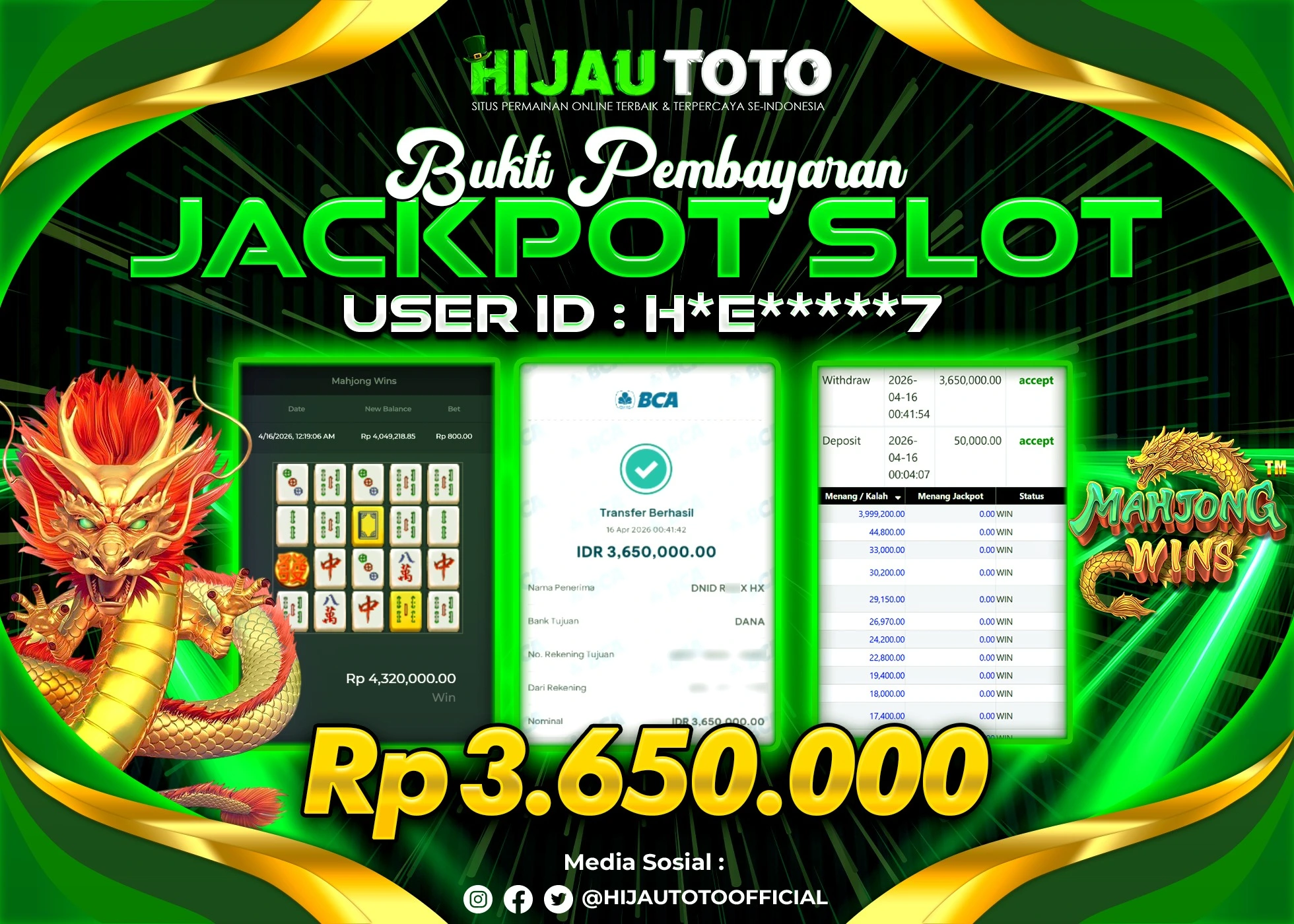 Bergabung dengan HIJAUTOTO sangat mudah dan cepat. Cukup lakukan pendaftaran dengan data lengkap, lakukan deposit minimal Rp5.000 melalui berbagai metode termasuk QRIS, dan mulai bertaruh dengan minimal taruhan Rp100. Dapatkan juga bonus new member 100% untuk modal bermain lebih besar.