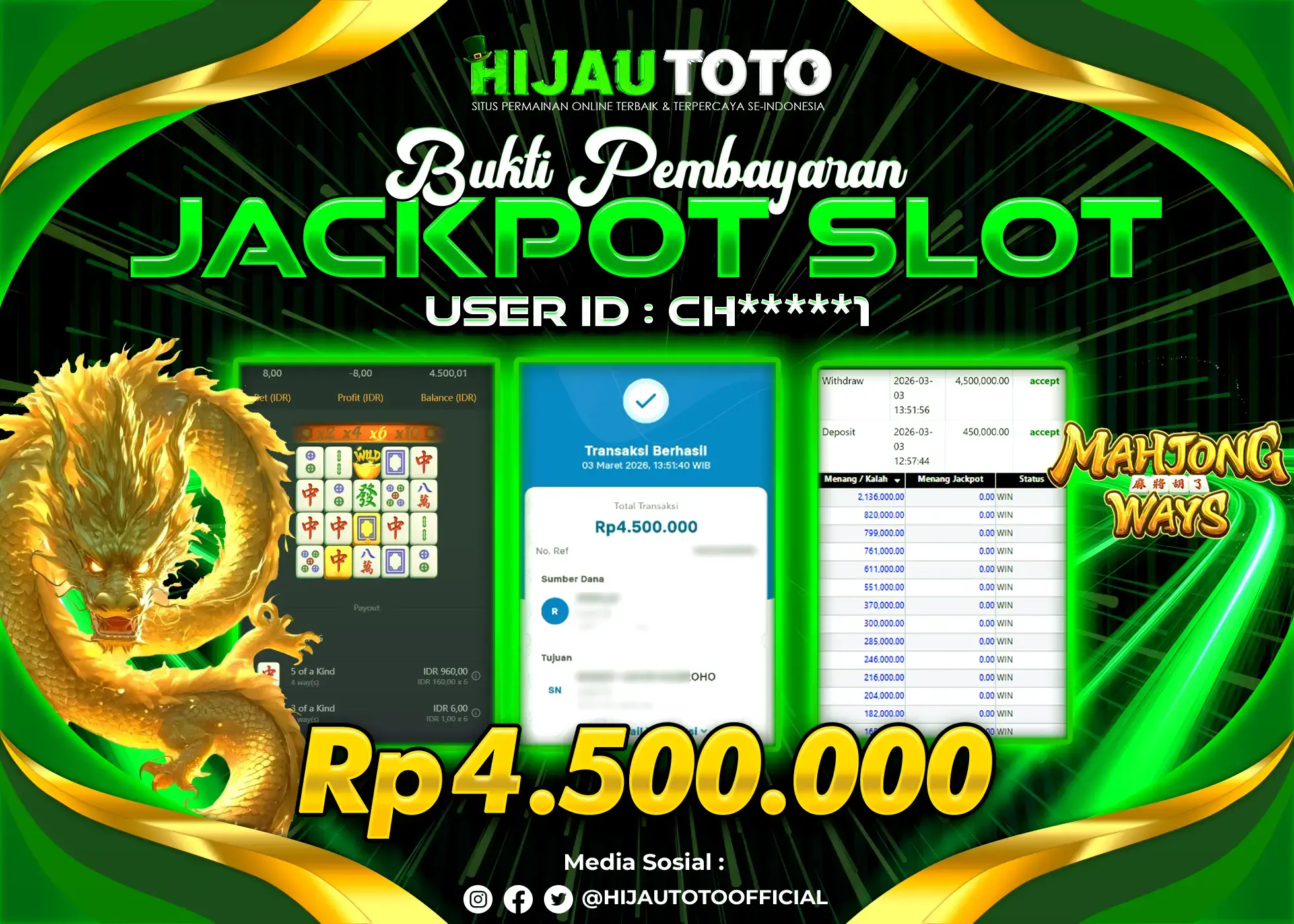 Selamat datang di HIJAUTOTO, tempatnya seru-seruan dan cuan besar! Mulai main cukup dengan modal Rp5.000 aja, taruhan super murah dari Rp100 perak! Mau main slot yang penuh warna? Atau togel dari 20 pasaran paling hits? Atau mungkin tembak ikan yang bikin deg-degan? Tenang, ada juga taruhan bola, sabung ayam, dan live casino yang bikin suasana makin hidup! Daftar sekarang dan dapetin bonus new member 100% langsung, biar modalmu makin tebal. Deposit gampang banget, bisa pakai QRIS, dan kalau butuh bantuan, customer service kita siap 24 jam nonstop. Jadi, tunggu apa lagi? Yuk, gabung dan bawa pulang kemenangannya cuma di HIJAUTOTO!
