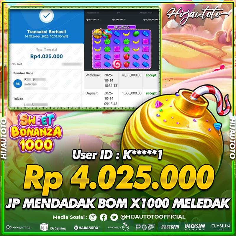 Selamat Kepada Member HIJAUTOTO K*****1 Telah Jackpot Di SLOT SWEET BONANZA 1000
