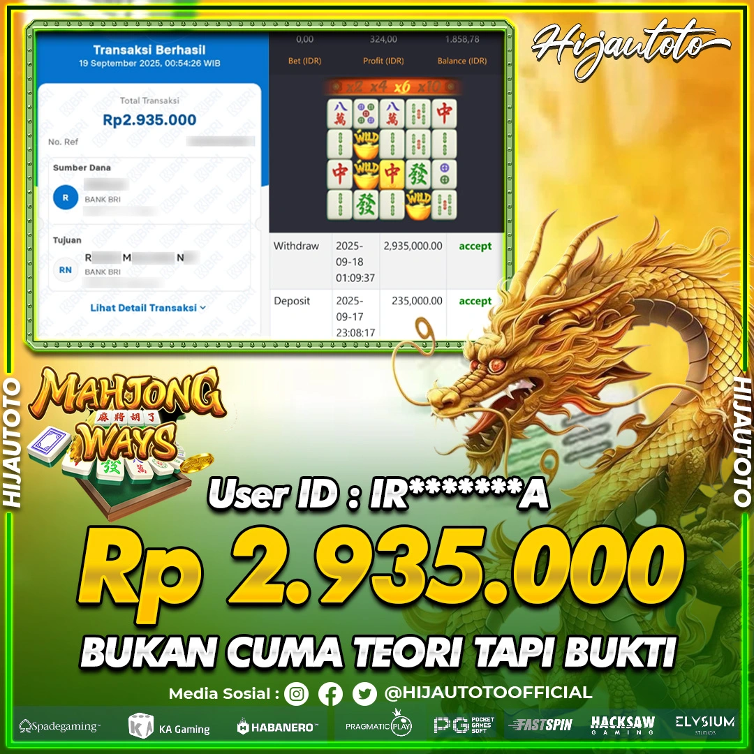 Selamat datang di HIJAUTOTO, tempatnya seru-seruan dan cuan besar! Mulai main cukup dengan modal Rp5.000 aja, taruhan super murah dari Rp100 perak! Mau main slot yang penuh warna? Atau togel dari 20 pasaran paling hits? Atau mungkin tembak ikan yang bikin deg-degan? Tenang, ada juga taruhan bola, sabung ayam, dan live casino yang bikin suasana makin hidup! Daftar sekarang dan dapetin bonus new member 100% langsung, biar modalmu makin tebal. Deposit gampang banget, bisa pakai QRIS, dan kalau butuh bantuan, customer service kita siap 24 jam nonstop. Jadi, tunggu apa lagi? Yuk, gabung dan bawa pulang kemenangannya cuma di HIJAUTOTO!