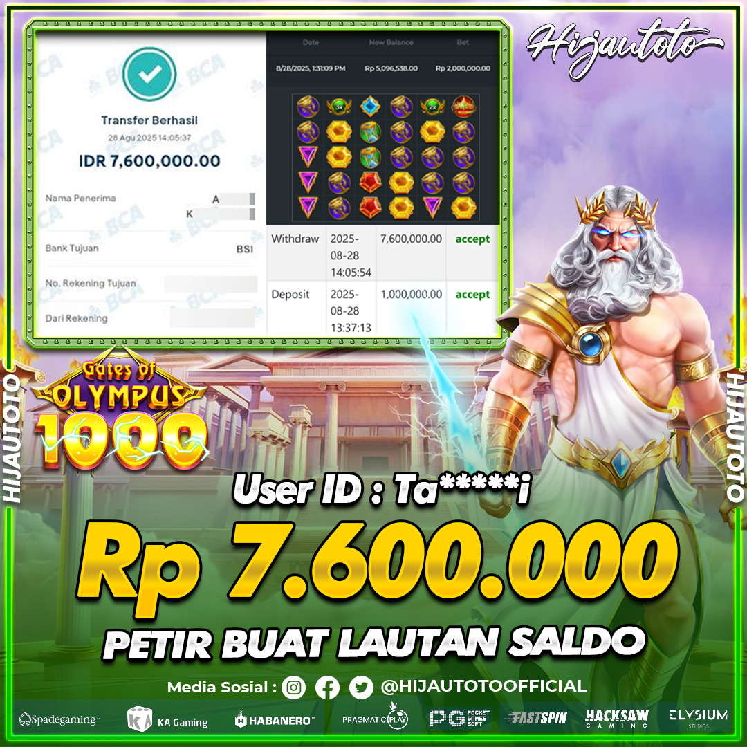 Selamat datang di HIJAUTOTO, tempatnya seru-seruan dan cuan besar! Mulai main cukup dengan modal Rp5.000 aja, taruhan super murah dari Rp100 perak! Mau main slot yang penuh warna? Atau togel dari 20 pasaran paling hits? Atau mungkin tembak ikan yang bikin deg-degan? Tenang, ada juga taruhan bola, sabung ayam, dan live casino yang bikin suasana makin hidup! Daftar sekarang dan dapetin bonus new member 100% langsung, biar modalmu makin tebal. Deposit gampang banget, bisa pakai QRIS, dan kalau butuh bantuan, customer service kita siap 24 jam nonstop. Jadi, tunggu apa lagi? Yuk, gabung dan bawa pulang kemenangannya cuma di HIJAUTOTO!