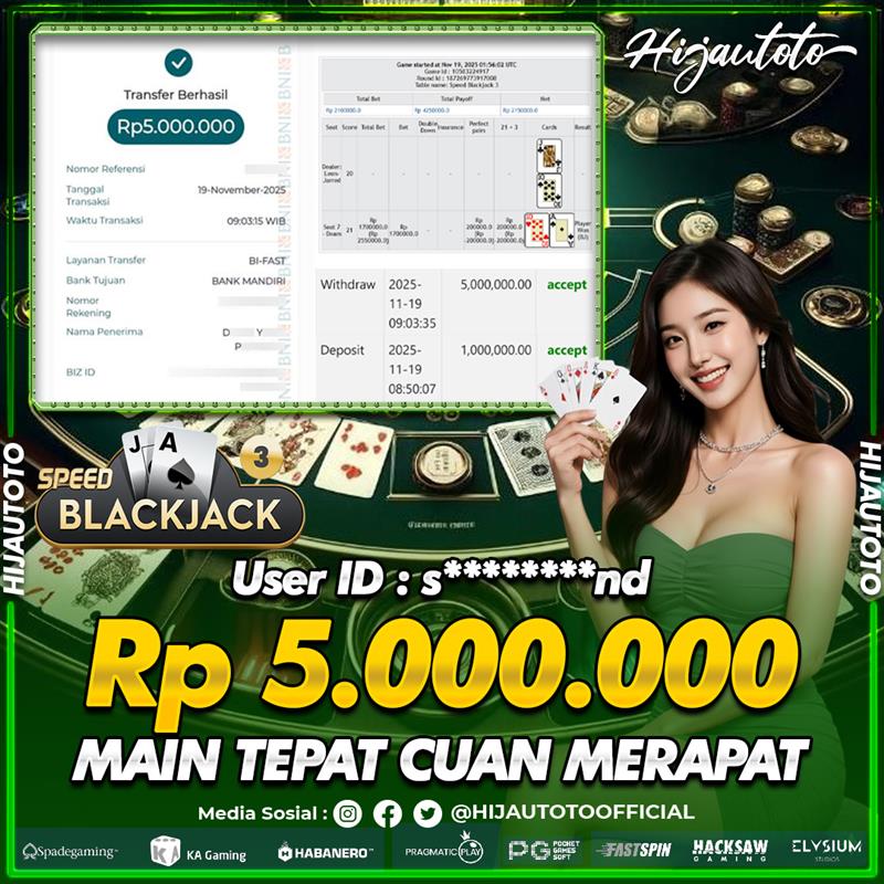 Selamat datang di HIJAUTOTO, tempatnya seru-seruan dan cuan besar! Mulai main cukup dengan modal Rp5.000 aja, taruhan super murah dari Rp100 perak! Mau main slot yang penuh warna? Atau togel dari 20 pasaran paling hits? Atau mungkin tembak ikan yang bikin deg-degan? Tenang, ada juga taruhan bola, sabung ayam, dan live casino yang bikin suasana makin hidup! Daftar sekarang dan dapetin bonus new member 100% langsung, biar modalmu makin tebal. Deposit gampang banget, bisa pakai QRIS, dan kalau butuh bantuan, customer service kita siap 24 jam nonstop. Jadi, tunggu apa lagi? Yuk, gabung dan bawa pulang kemenangannya cuma di HIJAUTOTO!
