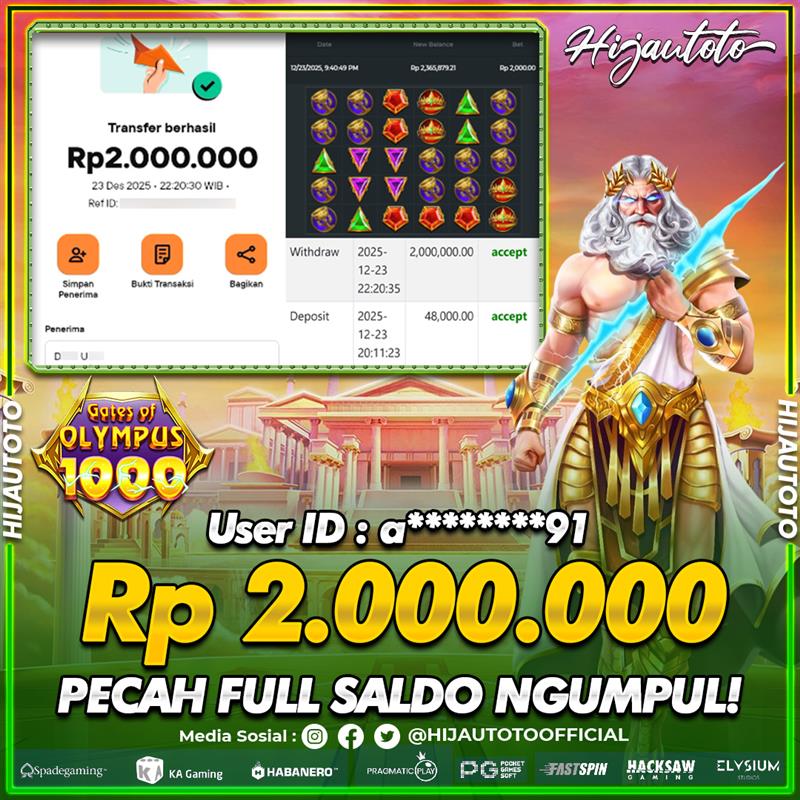 Selamat datang di HIJAUTOTO, tempatnya seru-seruan dan cuan besar! Mulai main cukup dengan modal Rp5.000 aja, taruhan super murah dari Rp100 perak! Mau main slot yang penuh warna? Atau togel dari 20 pasaran paling hits? Atau mungkin tembak ikan yang bikin deg-degan? Tenang, ada juga taruhan bola, sabung ayam, dan live casino yang bikin suasana makin hidup! Daftar sekarang dan dapetin bonus new member 100% langsung, biar modalmu makin tebal. Deposit gampang banget, bisa pakai QRIS, dan kalau butuh bantuan, customer service kita siap 24 jam nonstop. Jadi, tunggu apa lagi? Yuk, gabung dan bawa pulang kemenangannya cuma di HIJAUTOTO!