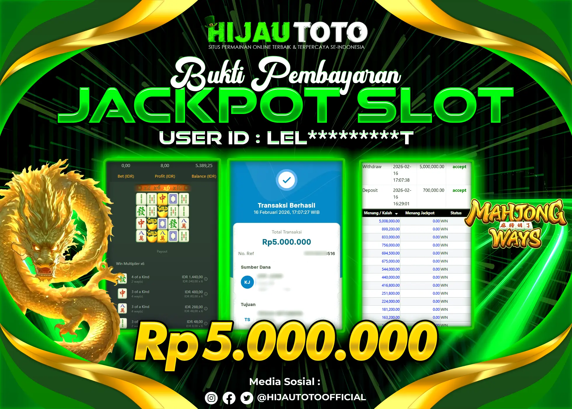 Bergabung dengan HIJAUTOTO sangat mudah dan cepat. Cukup lakukan pendaftaran dengan data lengkap, lakukan deposit minimal Rp5.000 melalui berbagai metode termasuk QRIS, dan mulai bertaruh dengan minimal taruhan Rp100. Dapatkan juga bonus new member 100% untuk modal bermain lebih besar.