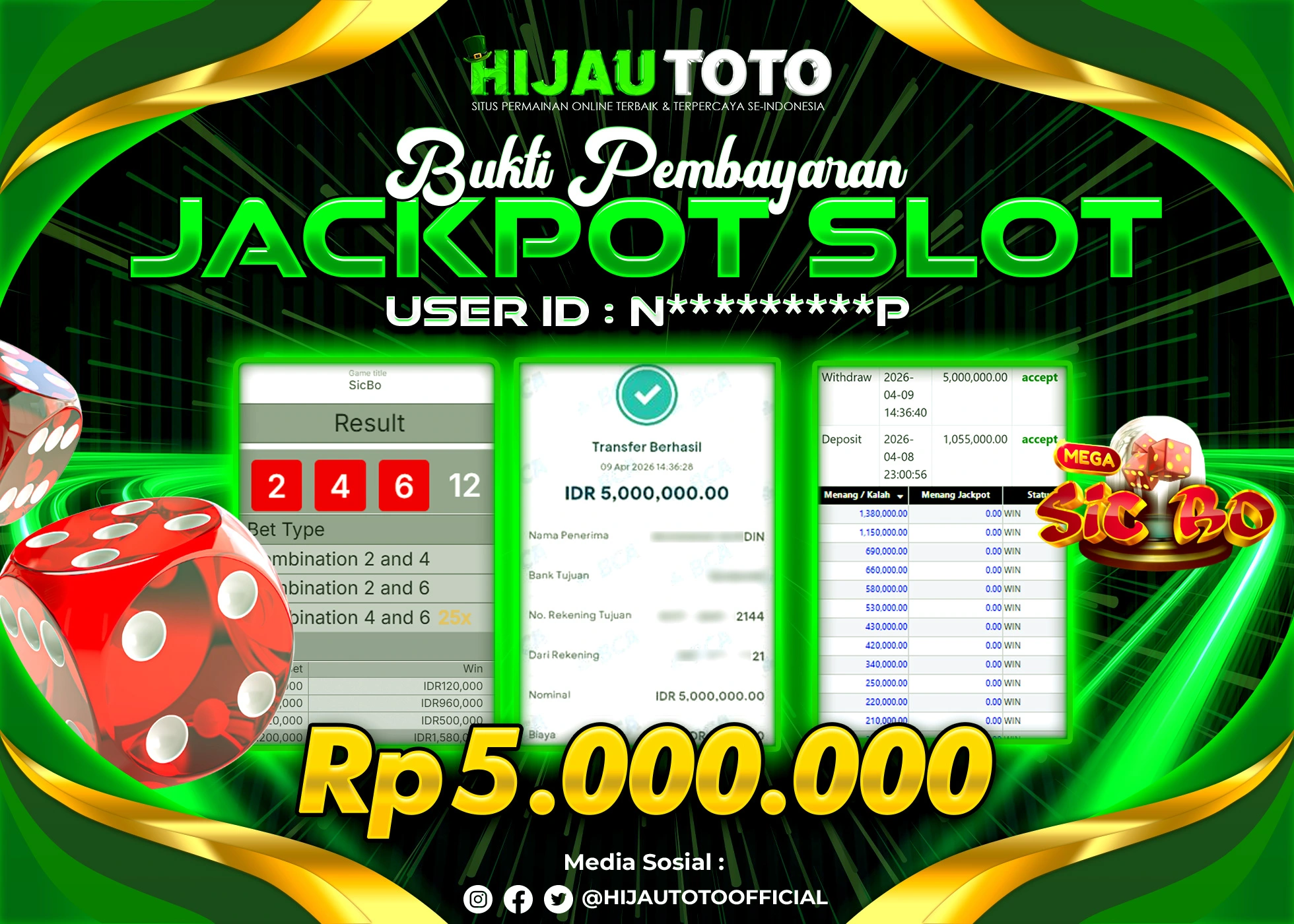 Selamat Kepada Member HIJAUTOTO N********P Telah Jackpot Di LIVE CASINO SIC BO