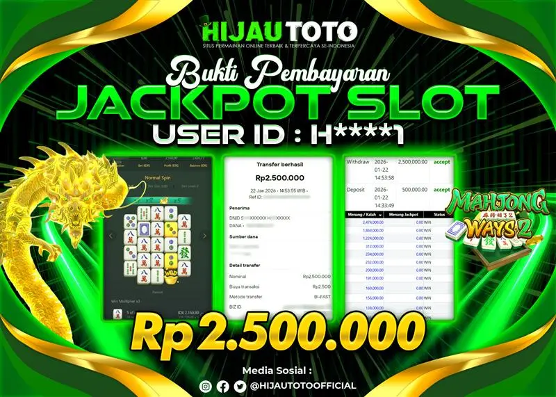 Karena berhasil memenangkan Rp.Rp.2.300.000 dari permainan seru SLOT MAHJONG WAYS di HIJAUTOTO! πŸ’°πŸ’Έ
