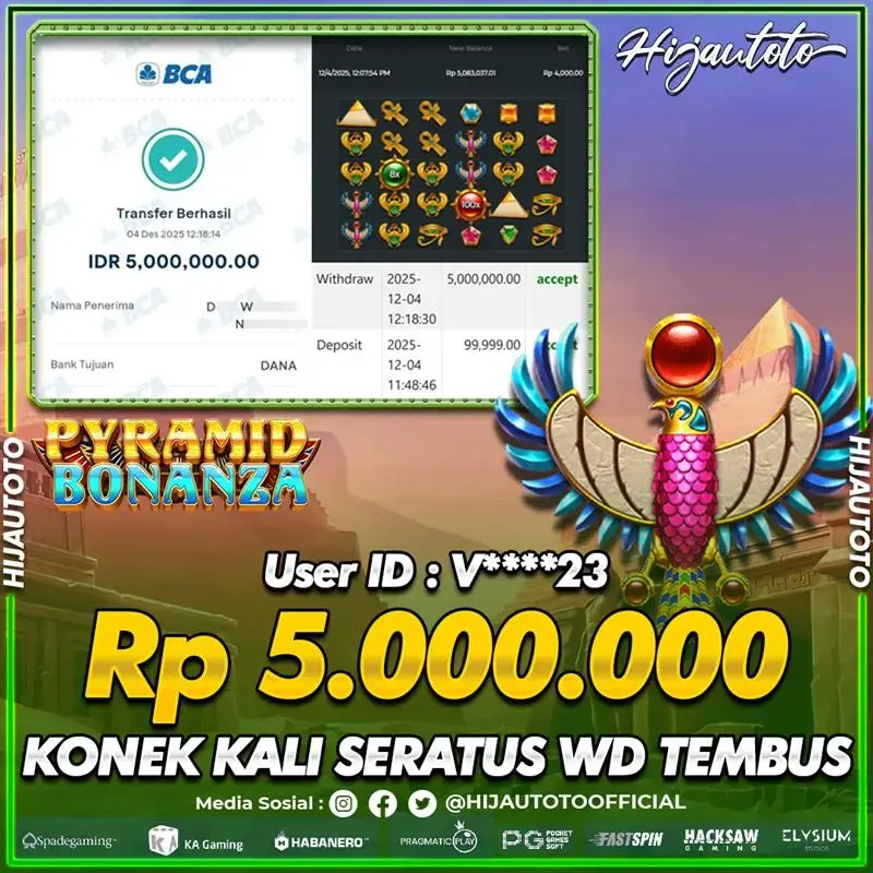 Selamat Kepada Member HIJAUTOTO V*****3 Telah Jackpot Di SLOT PYRAMID BONANZA