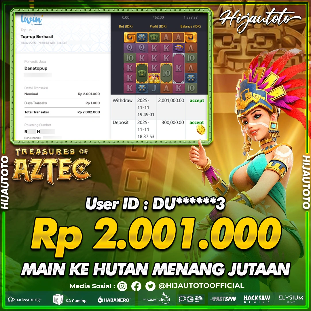 Cuma di HIJAUTOTO, tempat paling AMAN, CEPAT, & TERPERCAYA buat pecinta game SLOT TREASURES OF AZTEC!