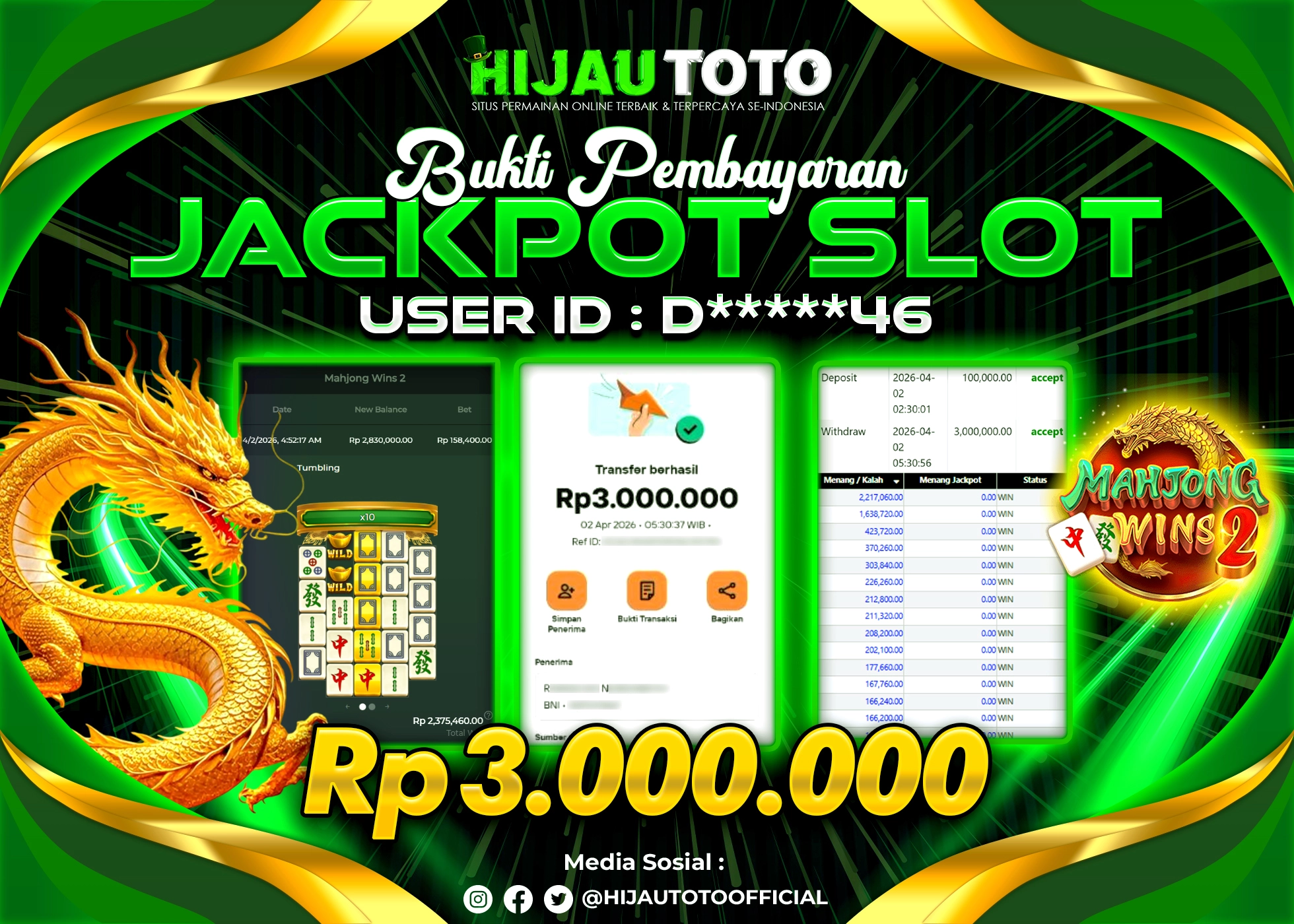 Selamat Kepada Member HIJAUTOTO D*****46 Telah Jackpot Di SLOT MAHJONG WINS 2