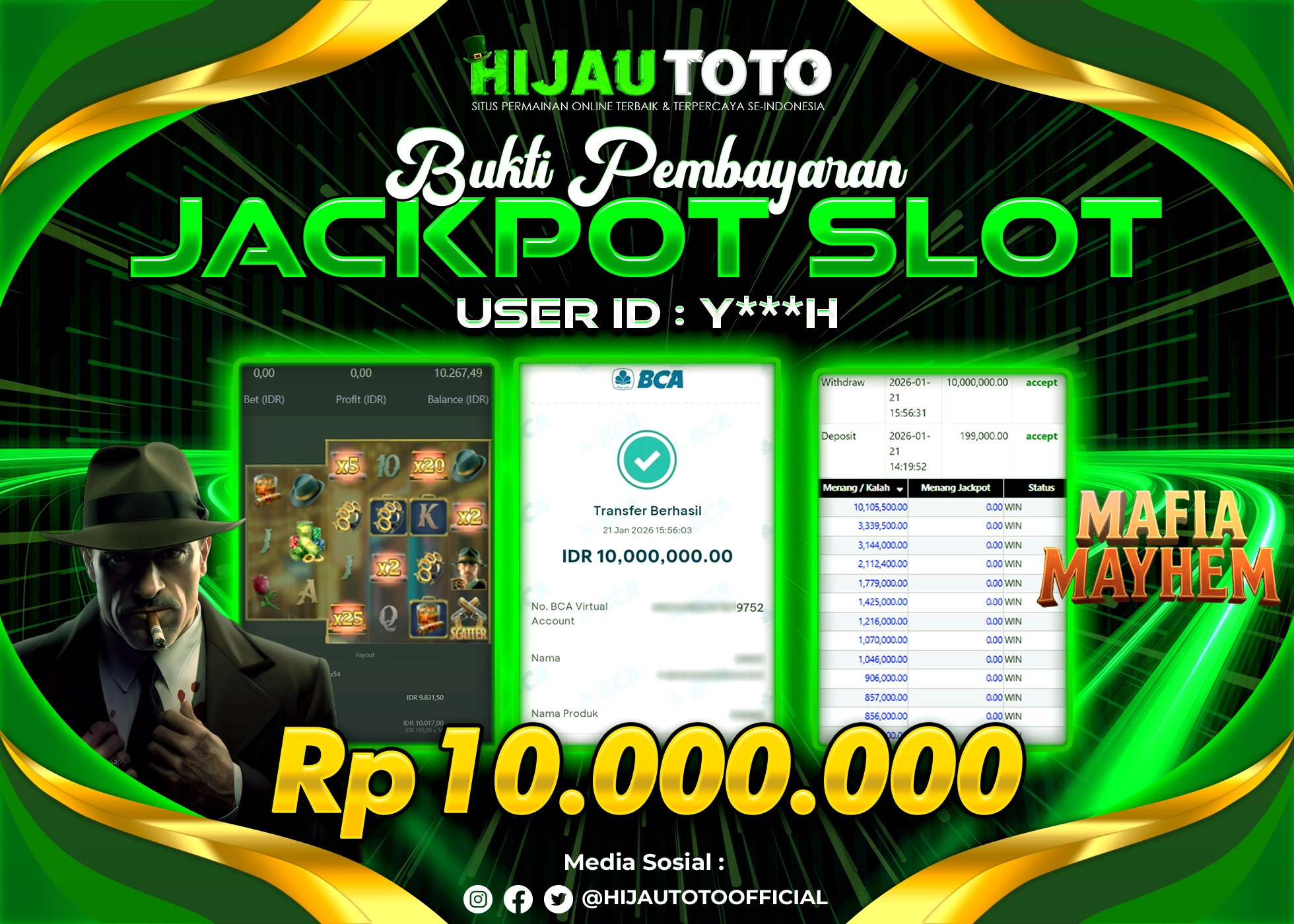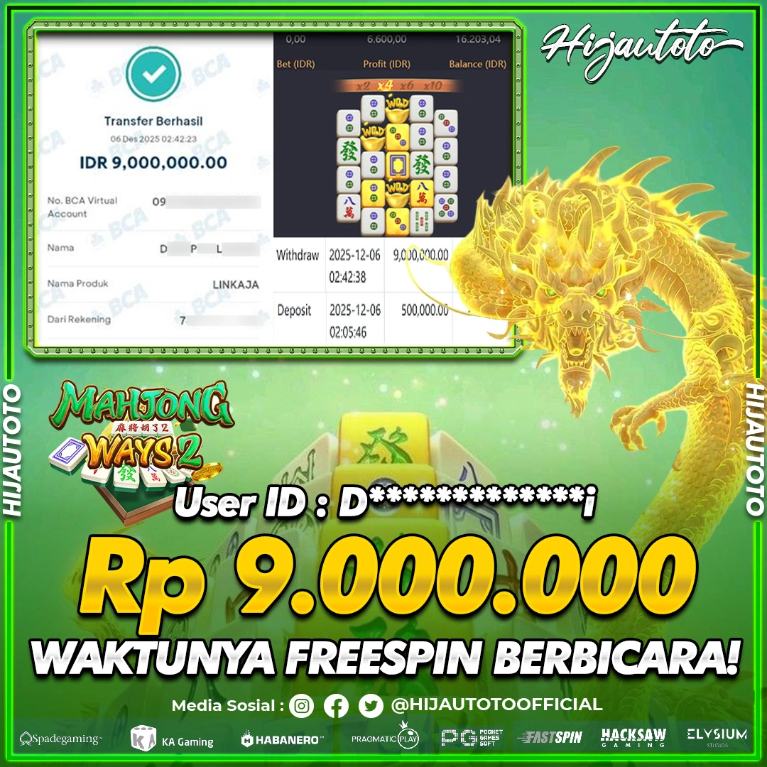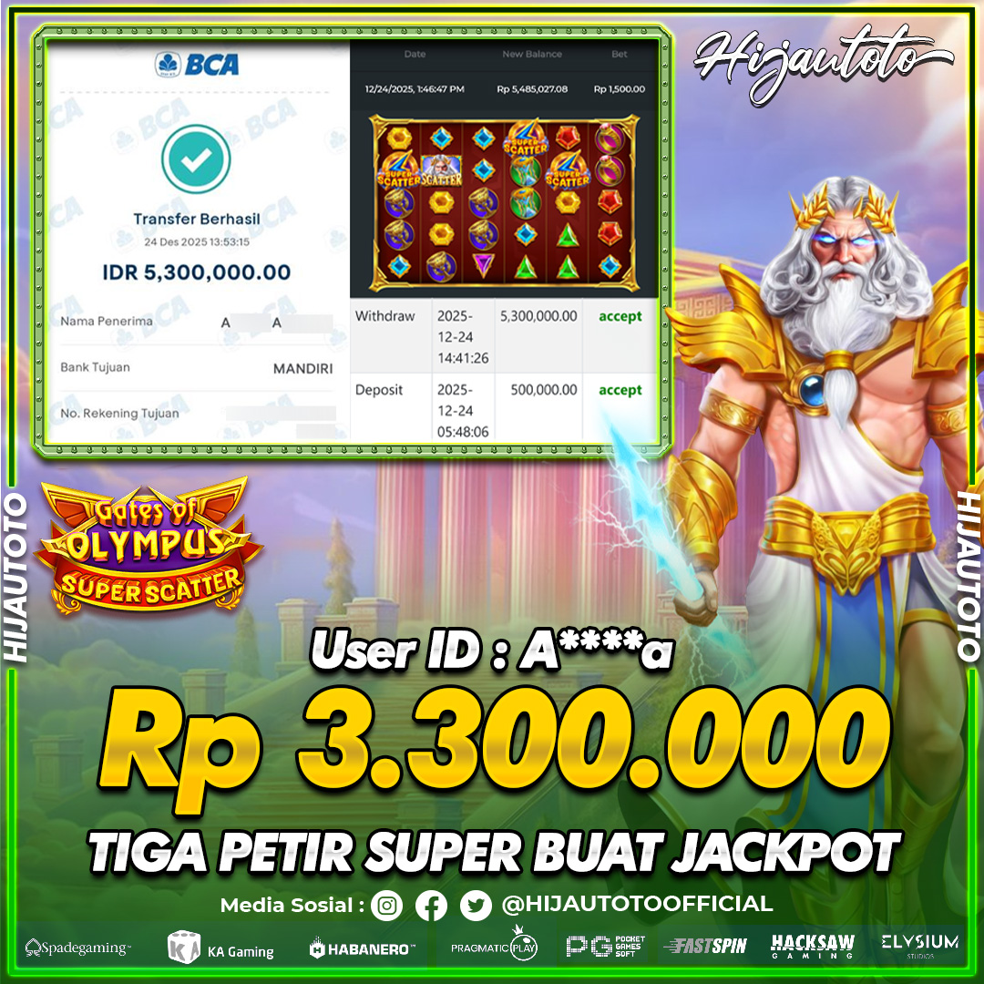 Selamat datang di HIJAUTOTO, tempatnya seru-seruan dan cuan besar! Mulai main cukup dengan modal Rp5.000 aja, taruhan super murah dari Rp100 perak! Mau main slot yang penuh warna? Atau togel dari 20 pasaran paling hits? Atau mungkin tembak ikan yang bikin deg-degan? Tenang, ada juga taruhan bola, sabung ayam, dan live casino yang bikin suasana makin hidup! Daftar sekarang dan dapetin bonus new member 100% langsung, biar modalmu makin tebal. Deposit gampang banget, bisa pakai QRIS, dan kalau butuh bantuan, customer service kita siap 24 jam nonstop. Jadi, tunggu apa lagi? Yuk, gabung dan bawa pulang kemenangannya cuma di HIJAUTOTO!