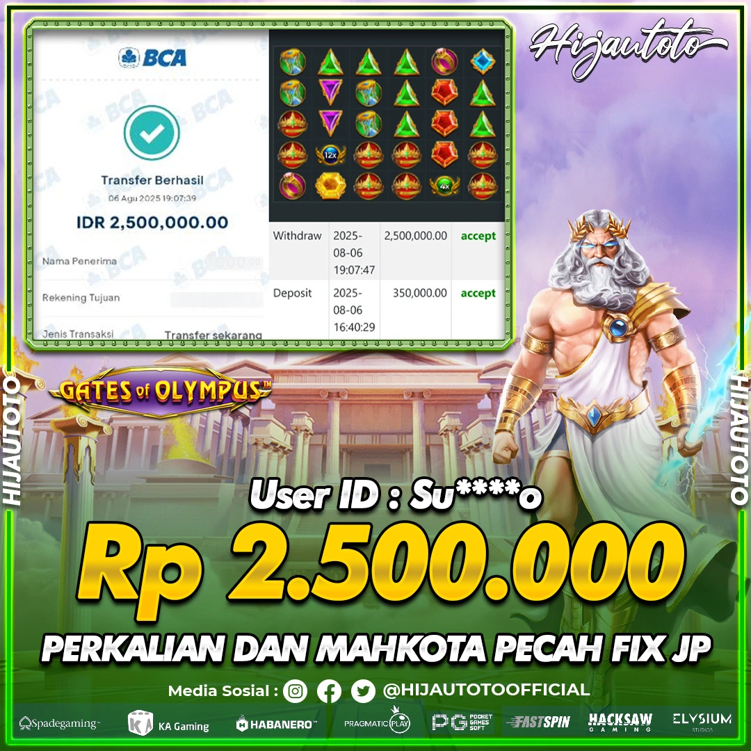 Selamat Kepada Member HIJAUTOTO SU****O Telah Jackpot Di SLOT GATES OF OLYMPUS