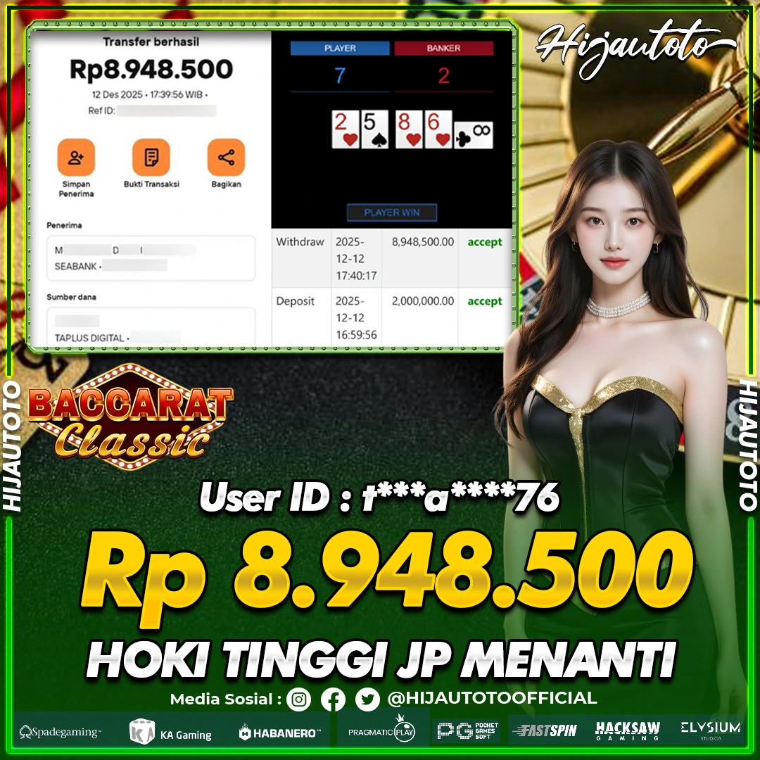 Selamat datang di HIJAUTOTO, tempatnya seru-seruan dan cuan besar! Mulai main cukup dengan modal Rp5.000 aja, taruhan super murah dari Rp100 perak! Mau main slot yang penuh warna? Atau togel dari 20 pasaran paling hits? Atau mungkin tembak ikan yang bikin deg-degan? Tenang, ada juga taruhan bola, sabung ayam, dan live casino yang bikin suasana makin hidup! Daftar sekarang dan dapetin bonus new member 100% langsung, biar modalmu makin tebal. Deposit gampang banget, bisa pakai QRIS, dan kalau butuh bantuan, customer service kita siap 24 jam nonstop. Jadi, tunggu apa lagi? Yuk, gabung dan bawa pulang kemenangannya cuma di HIJAUTOTO!