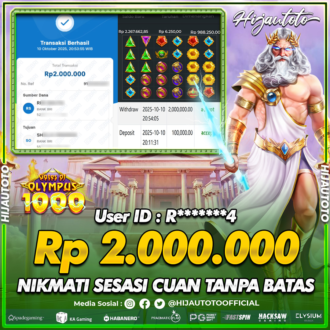 β¨ JACKPOT DI SLOT GATES OF OLYMPUS 1000 β¨