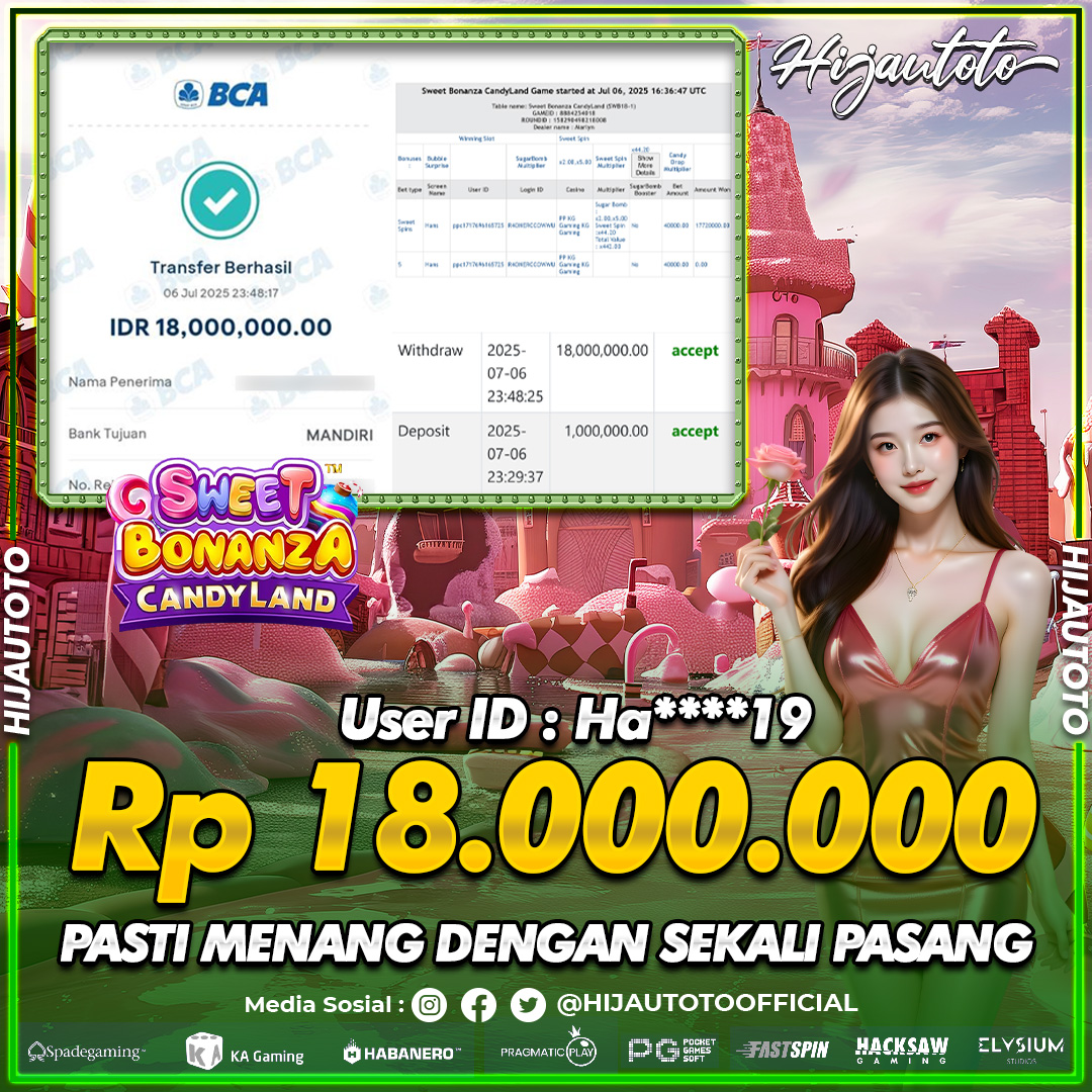 Selamat Kepada Member HIJAUTOTO HA****19 Telah Jackpot Di LIVE CASINO SWEET BONANZA CANDYLAND