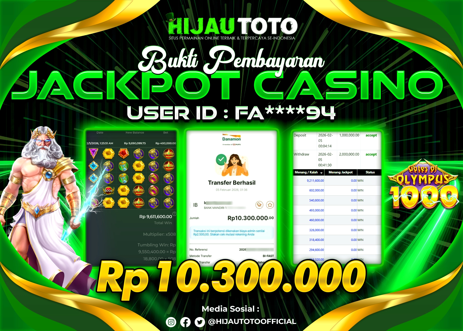 Selamat datang di HIJAUTOTO, tempatnya seru-seruan dan cuan besar! Mulai main cukup dengan modal Rp5.000 aja, taruhan super murah dari Rp100 perak! Mau main slot yang penuh warna? Atau togel dari 20 pasaran paling hits? Atau mungkin tembak ikan yang bikin deg-degan? Tenang, ada juga taruhan bola, sabung ayam, dan live casino yang bikin suasana makin hidup! Daftar sekarang dan dapetin bonus new member 100% langsung, biar modalmu makin tebal. Deposit gampang banget, bisa pakai QRIS, dan kalau butuh bantuan, customer service kita siap 24 jam nonstop. Jadi, tunggu apa lagi? Yuk, gabung dan bawa pulang kemenangannya cuma di HIJAUTOTO!