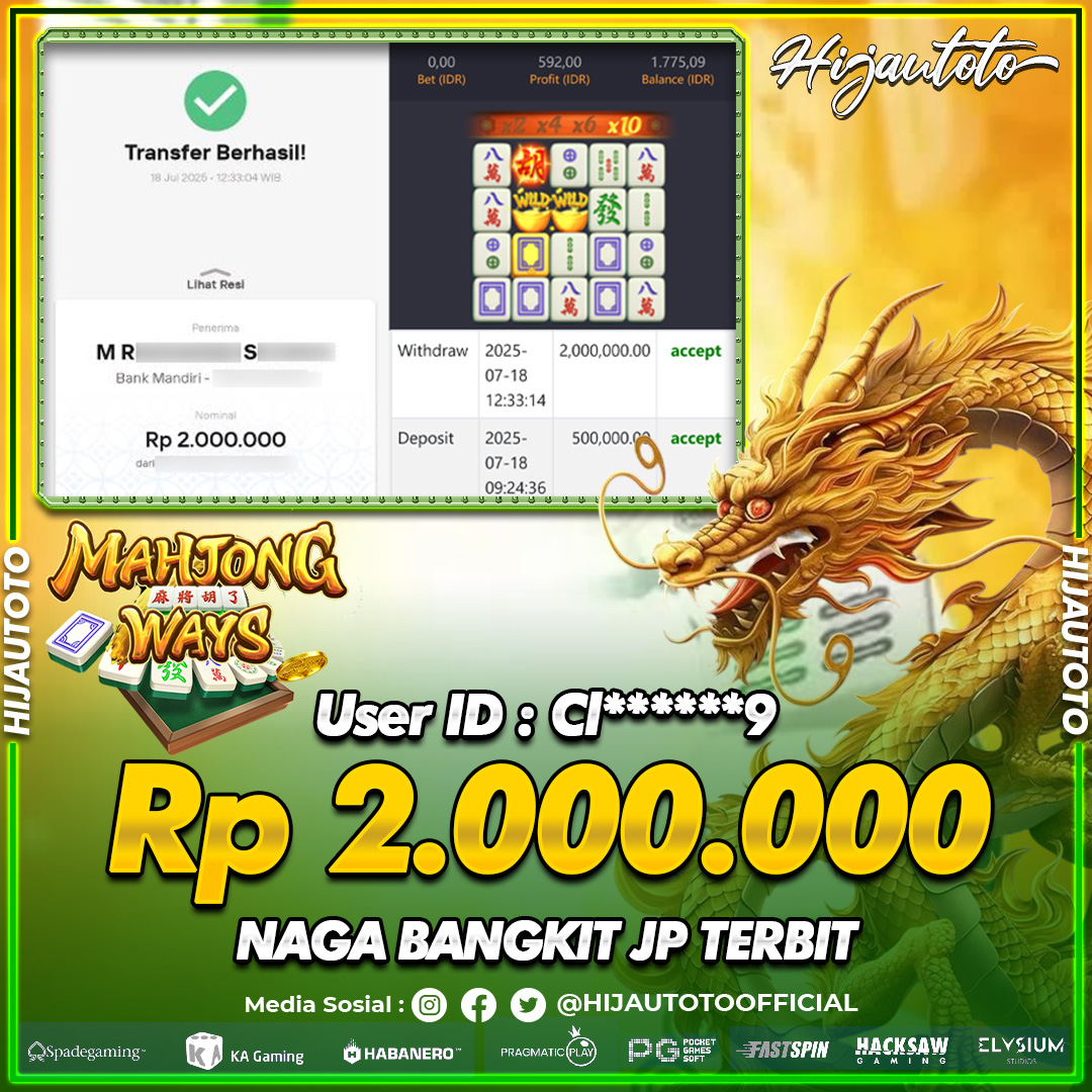 Karena berhasil memenangkan Rp.Rp.2.000.000 dari permainan seru SLOT MAHJONG WAYS di HIJAUTOTO! πŸ’°πŸ’Έ