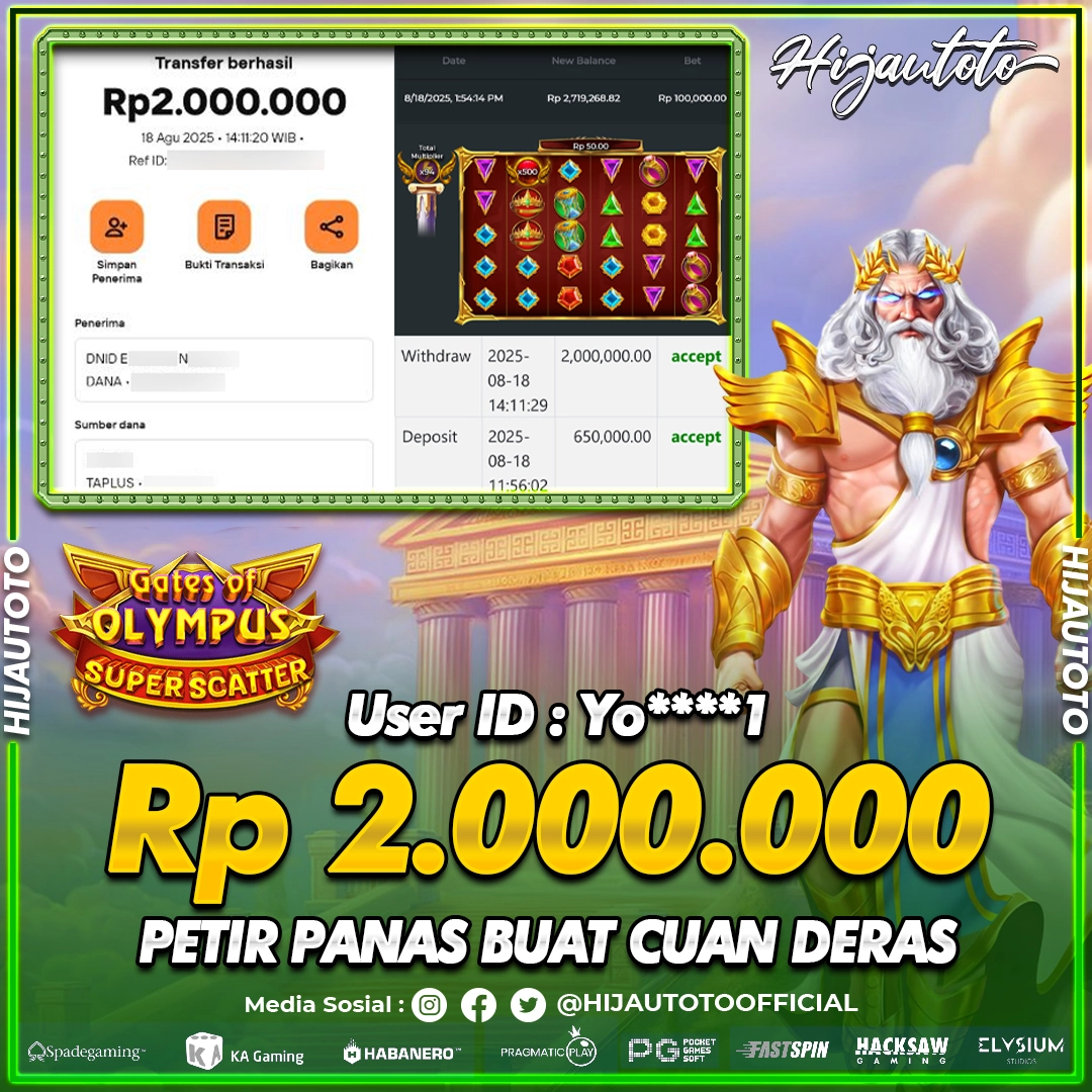 Selamat datang di HIJAUTOTO, tempatnya seru-seruan dan cuan besar! Mulai main cukup dengan modal Rp5.000 aja, taruhan super murah dari Rp100 perak! Mau main slot yang penuh warna? Atau togel dari 20 pasaran paling hits? Atau mungkin tembak ikan yang bikin deg-degan? Tenang, ada juga taruhan bola, sabung ayam, dan live casino yang bikin suasana makin hidup! Daftar sekarang dan dapetin bonus new member 100% langsung, biar modalmu makin tebal. Deposit gampang banget, bisa pakai QRIS, dan kalau butuh bantuan, customer service kita siap 24 jam nonstop. Jadi, tunggu apa lagi? Yuk, gabung dan bawa pulang kemenangannya cuma di HIJAUTOTO!