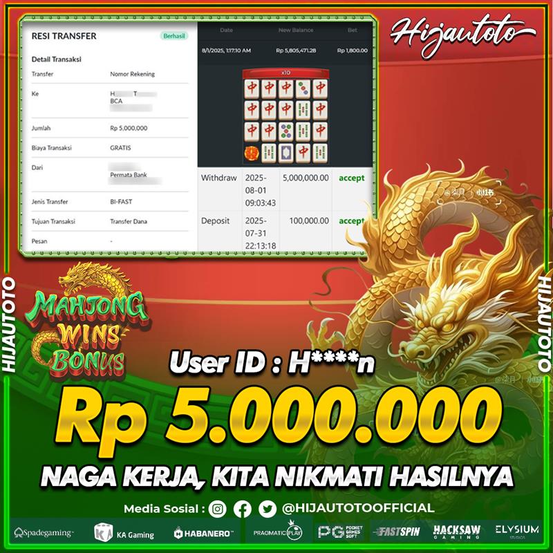 Selamat datang di HIJAUTOTO, tempatnya seru-seruan dan cuan besar! Mulai main cukup dengan modal Rp5.000 aja, taruhan super murah dari Rp100 perak! Mau main slot yang penuh warna? Atau togel dari 20 pasaran paling hits? Atau mungkin tembak ikan yang bikin deg-degan? Tenang, ada juga taruhan bola, sabung ayam, dan live casino yang bikin suasana makin hidup! Daftar sekarang dan dapetin bonus new member 100% langsung, biar modalmu makin tebal. Deposit gampang banget, bisa pakai QRIS, dan kalau butuh bantuan, customer service kita siap 24 jam nonstop. Jadi, tunggu apa lagi? Yuk, gabung dan bawa pulang kemenangannya cuma di HIJAUTOTO!