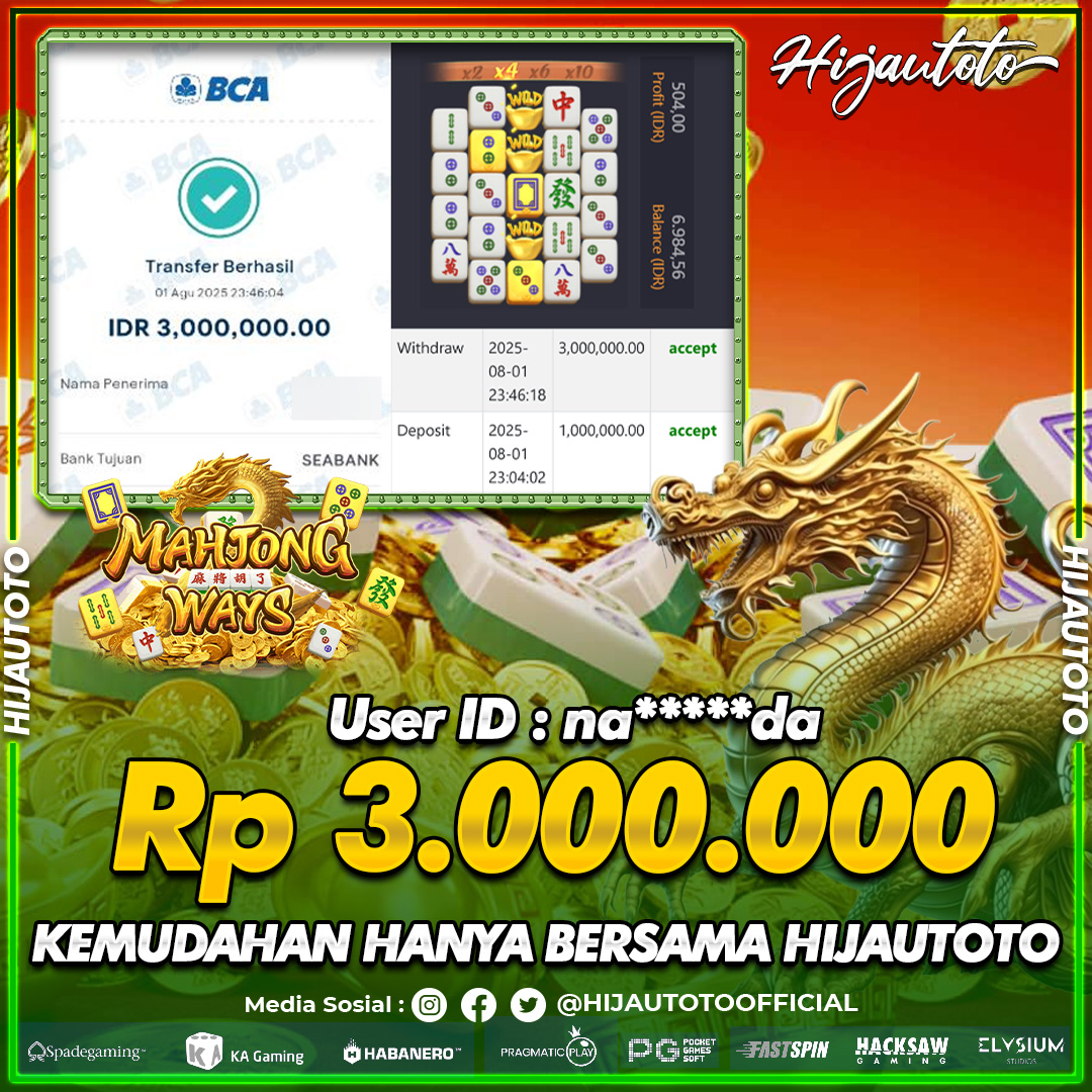 Selamat datang di HIJAUTOTO, tempatnya seru-seruan dan cuan besar! Mulai main cukup dengan modal Rp5.000 aja, taruhan super murah dari Rp100 perak! Mau main slot yang penuh warna? Atau togel dari 20 pasaran paling hits? Atau mungkin tembak ikan yang bikin deg-degan? Tenang, ada juga taruhan bola, sabung ayam, dan live casino yang bikin suasana makin hidup! Daftar sekarang dan dapetin bonus new member 100% langsung, biar modalmu makin tebal. Deposit gampang banget, bisa pakai QRIS, dan kalau butuh bantuan, customer service kita siap 24 jam nonstop. Jadi, tunggu apa lagi? Yuk, gabung dan bawa pulang kemenangannya cuma di HIJAUTOTO!