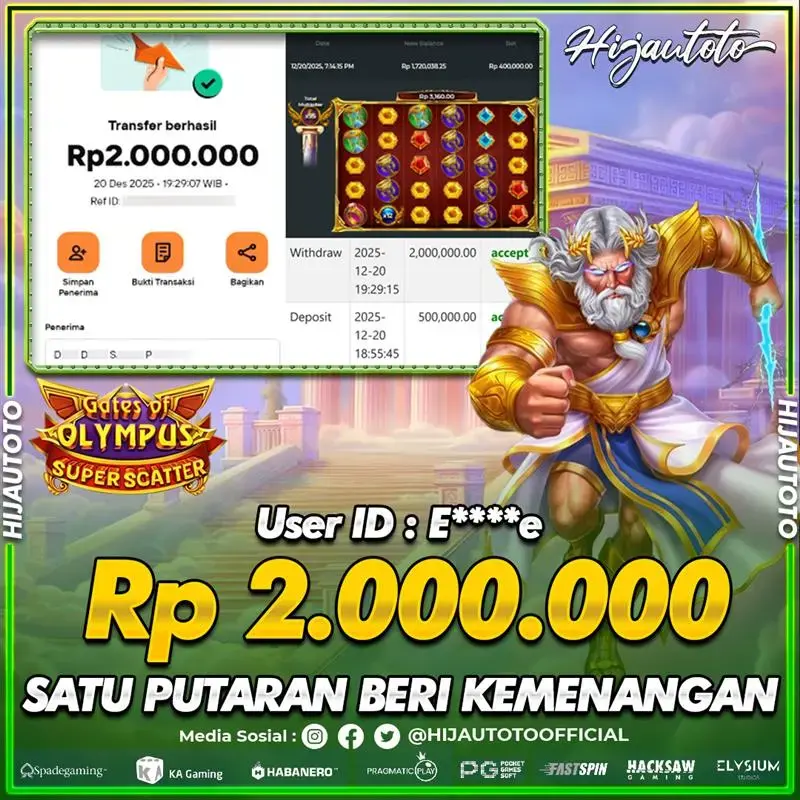 Selamat datang di HIJAUTOTO, tempatnya seru-seruan dan cuan besar! Mulai main cukup dengan modal Rp5.000 aja, taruhan super murah dari Rp100 perak! Mau main slot yang penuh warna? Atau togel dari 20 pasaran paling hits? Atau mungkin tembak ikan yang bikin deg-degan? Tenang, ada juga taruhan bola, sabung ayam, dan live casino yang bikin suasana makin hidup! Daftar sekarang dan dapetin bonus new member 100% langsung, biar modalmu makin tebal. Deposit gampang banget, bisa pakai QRIS, dan kalau butuh bantuan, customer service kita siap 24 jam nonstop. Jadi, tunggu apa lagi? Yuk, gabung dan bawa pulang kemenangannya cuma di HIJAUTOTO!
