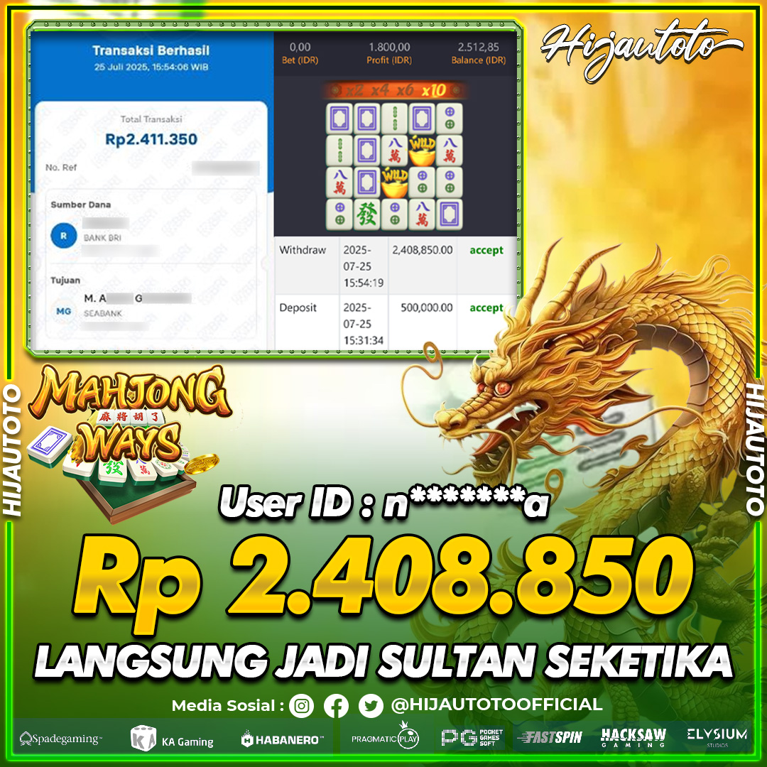 Cuma di HIJAUTOTO, tempat paling AMAN, CEPAT, & TERPERCAYA buat pecinta game SLOT MAHJONG WAYS!